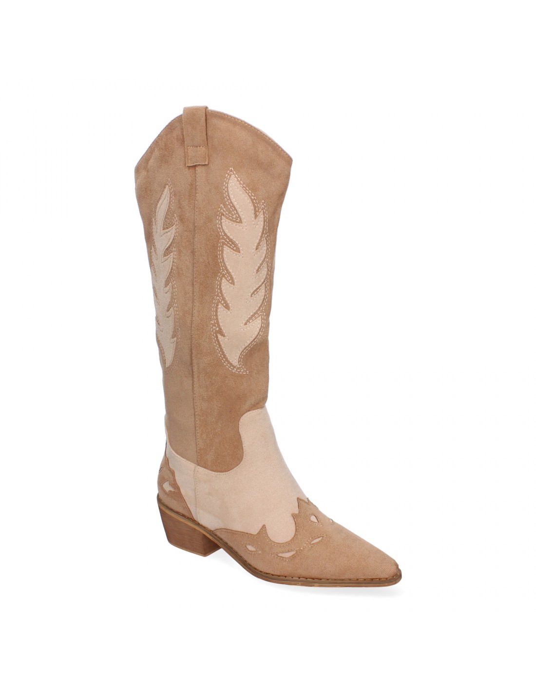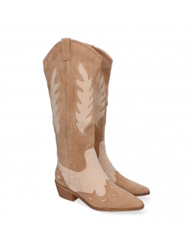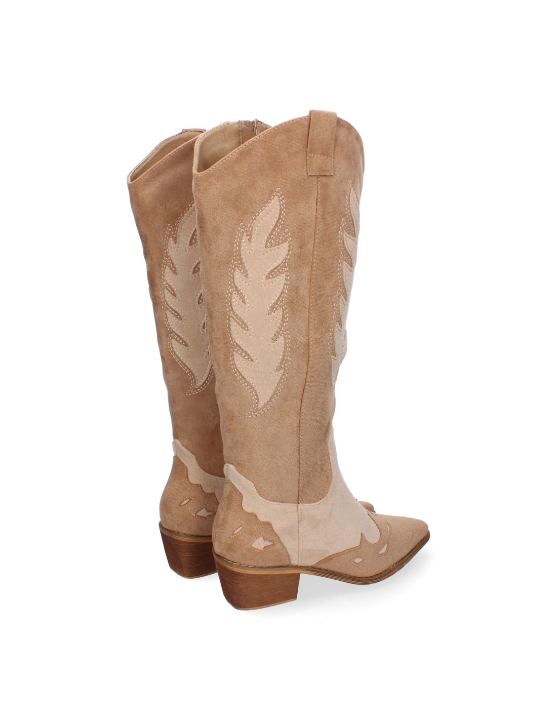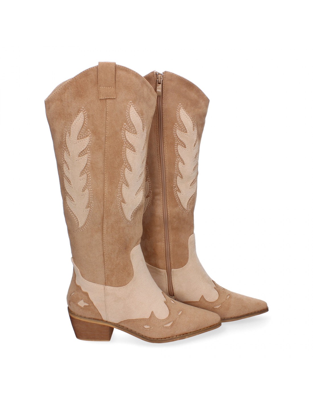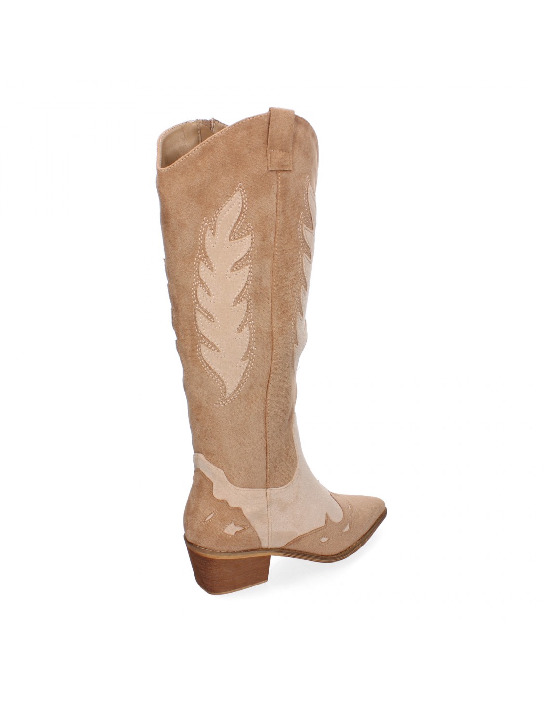Bota de tacon para mujer comodas, de material aterciopelado, con estampado en la caña y en la pala y cierre de cremallera.