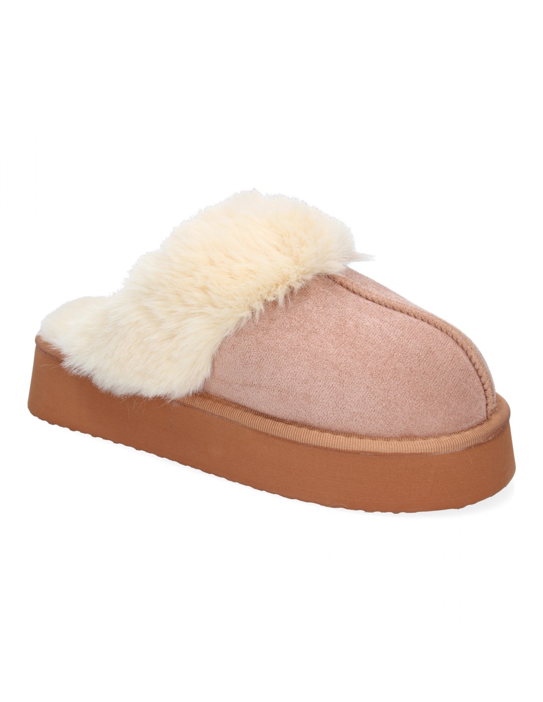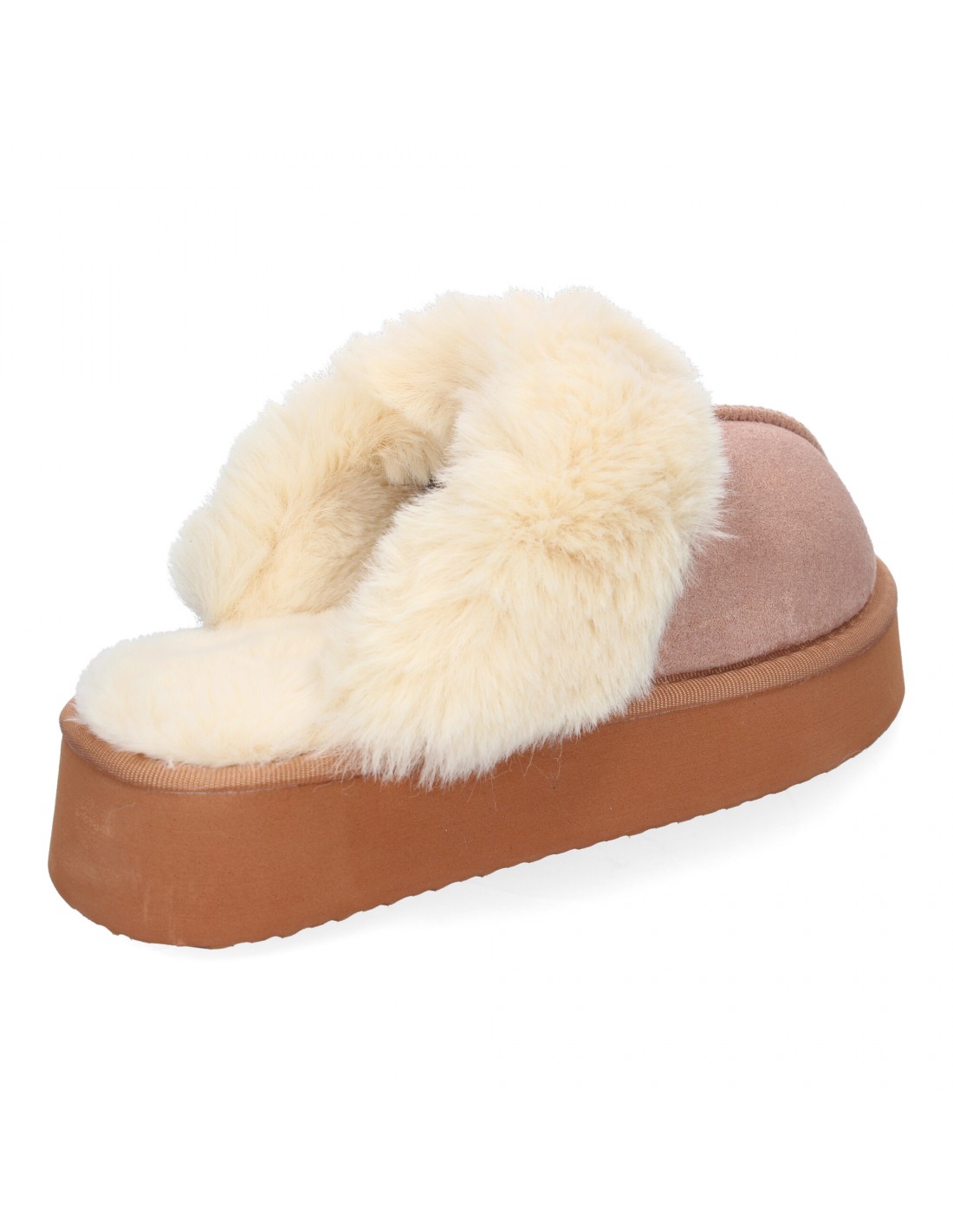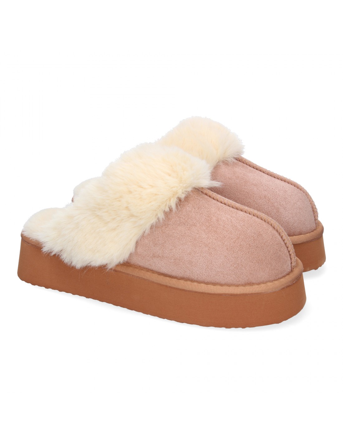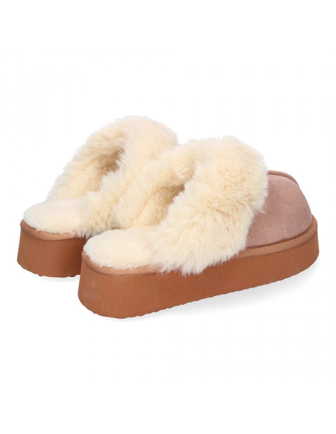 Zapatilla de casa estilo australiano, calidas, forradas de pelo, de plataforma y puntera rendonda.