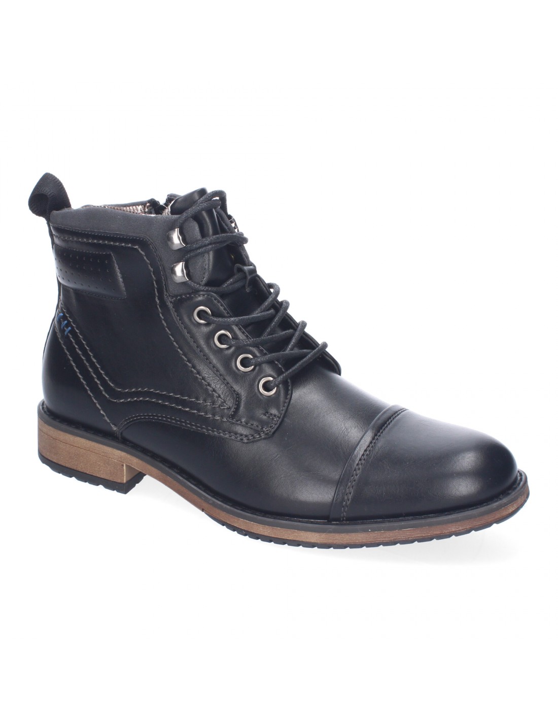 Botines de Hombre, Comodos y Elegantes, Diseño Clasico con Punta Redonda, Adornos de Costuras, Cierre de Cordones y Cremallera Lateral.