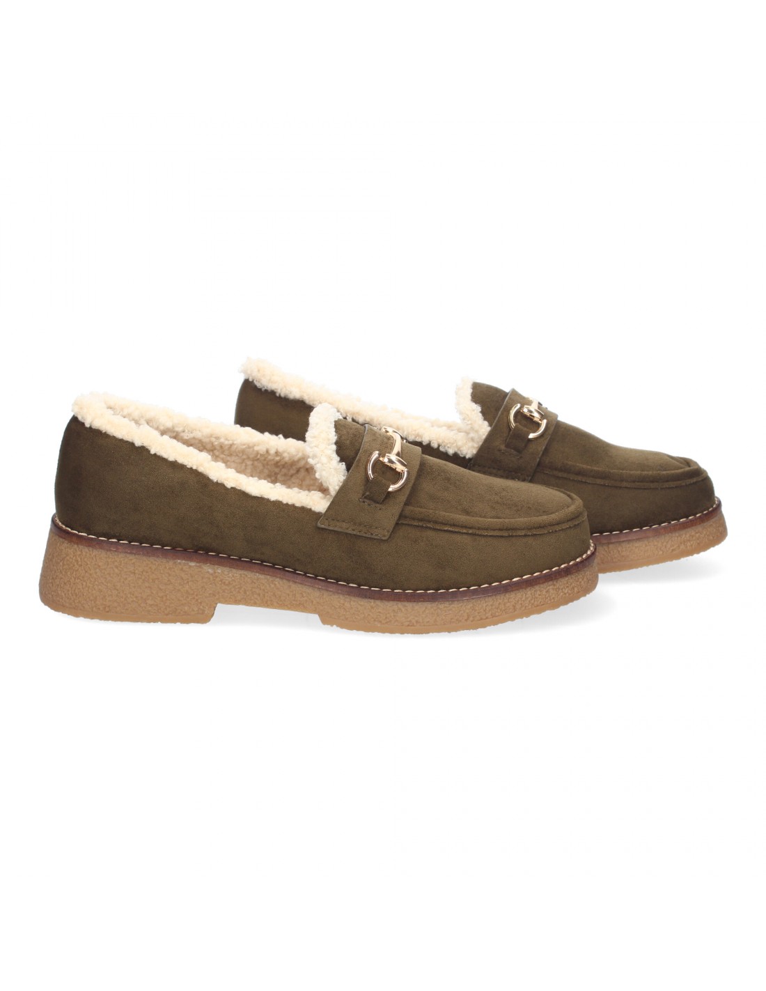 Mocasines de Mujer, Comodos y Elegantes, Forrados de Borreguillo, Detalles de Costuras y Adorno Metalico en el Empeine.
