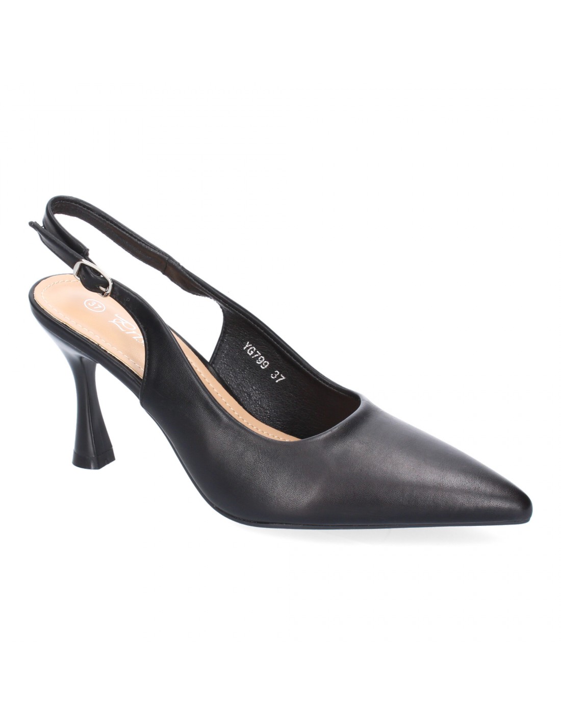 Zapato para Mujer, Estilo Salón, con Tacón, Puntera Fina, talon abierto y Hebilla Ajustable.