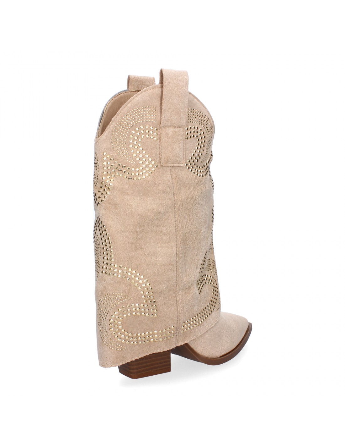 Botines de Tacón para Mujer, Estilo Cowboy Polaina, Comodas y Elegantes, con Adorno de Tachuelas Sin Cierre.
