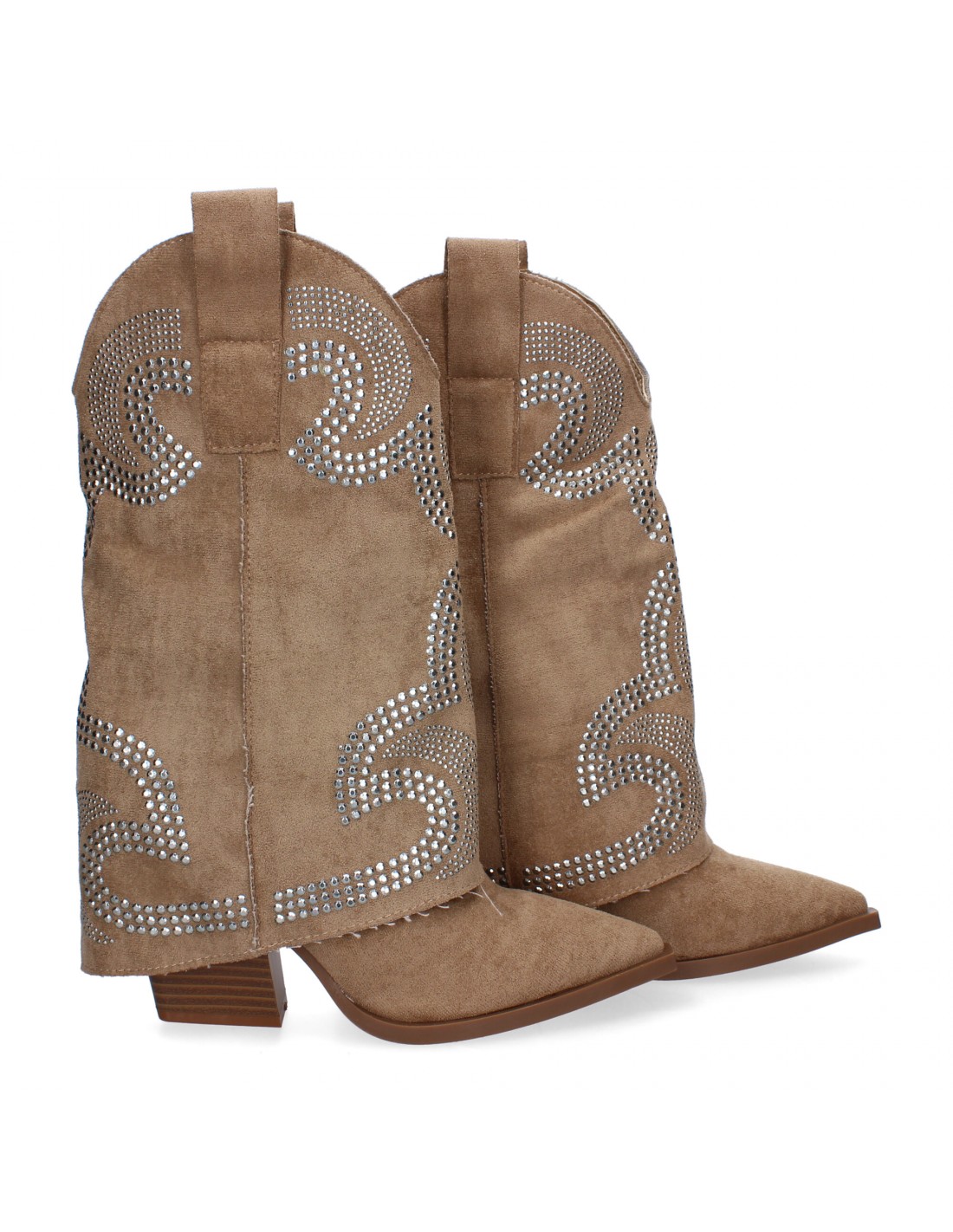 Botines de Tacón para Mujer, Estilo Cowboy Polaina, Comodas y Elegantes, con Adorno de Tachuelas Sin Cierre.