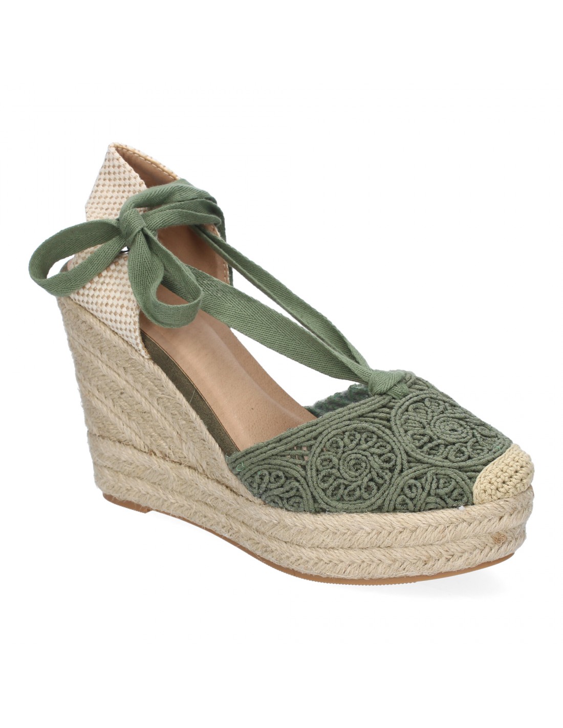 Sandalia de Cuña de Yute para Mujer, Diseño Comodo y Moderno, Elegante con Cintas Atadas al Tobillo y Pala Bordada, Ideales para Primavera-Verano.