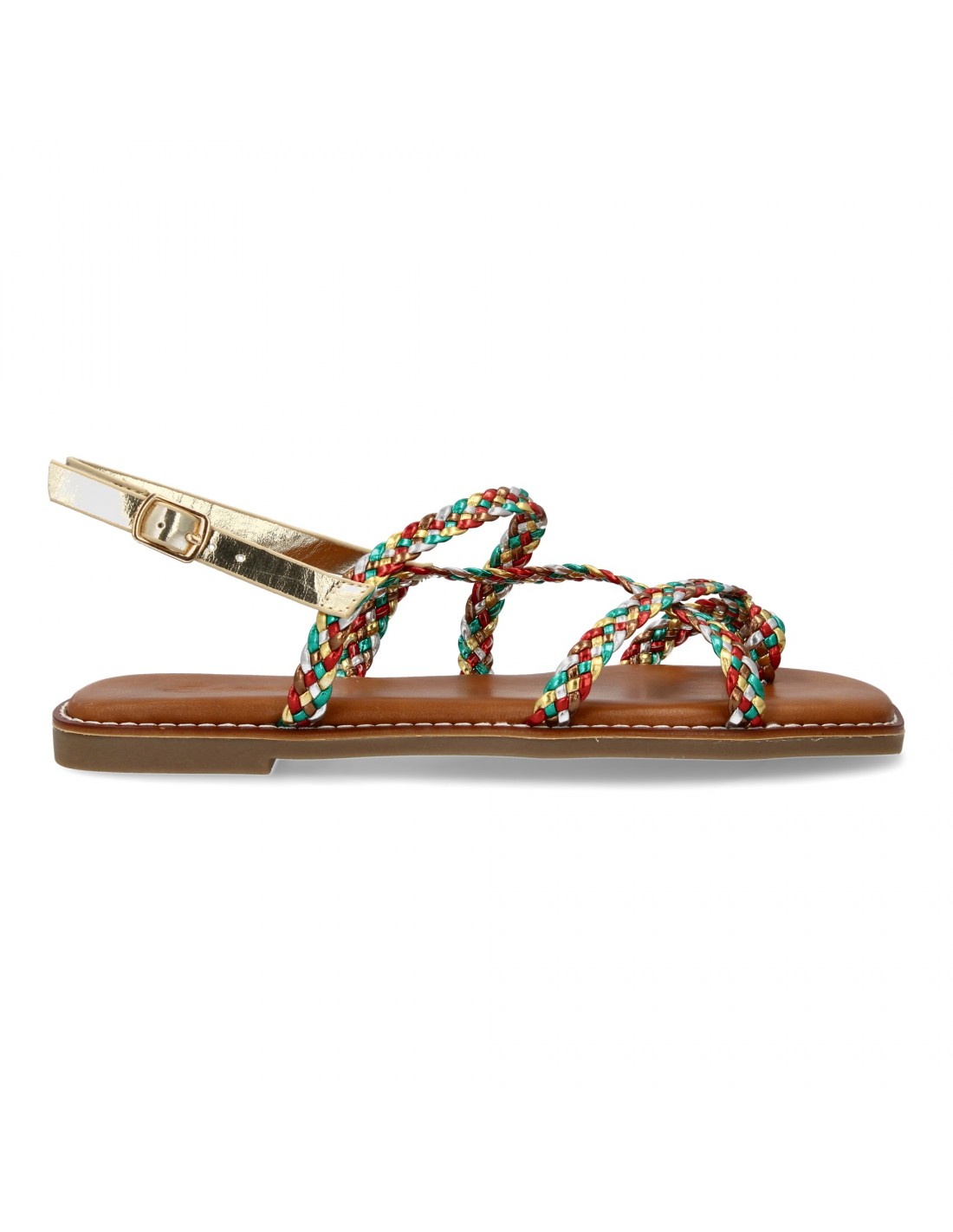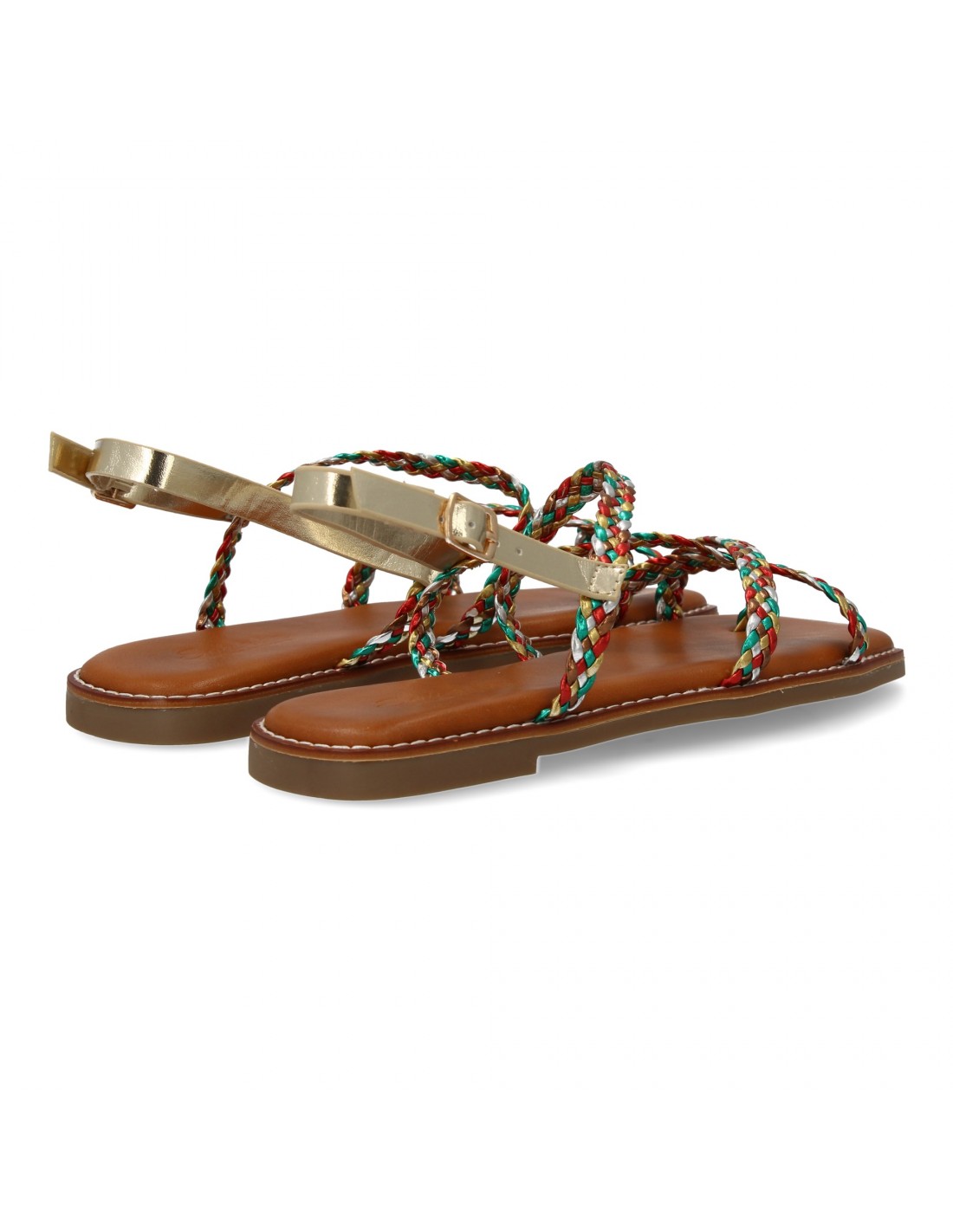 Sandalias planas de mujer, elegantes y comodas, diseño trenzado con cierre de hebilla ajustables ideales para el día a día.