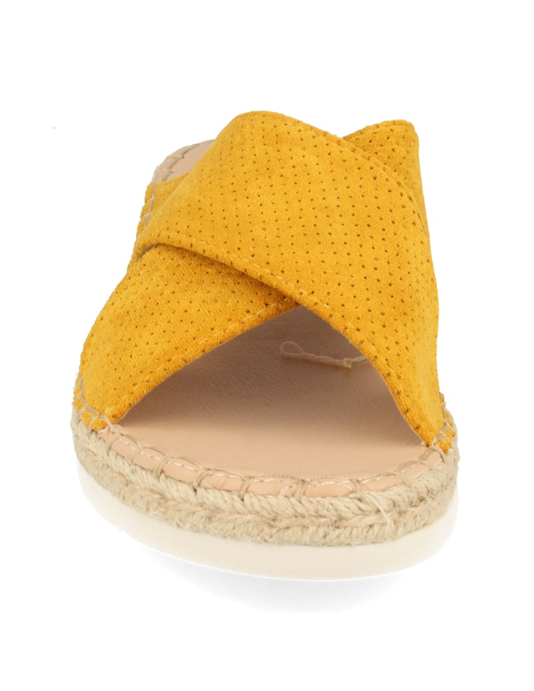 Sandalia Plana con Cuña Baja de Yute, Doble Pala Cruzada, con Perforado Mil Puntos Primavera Verano 2020
