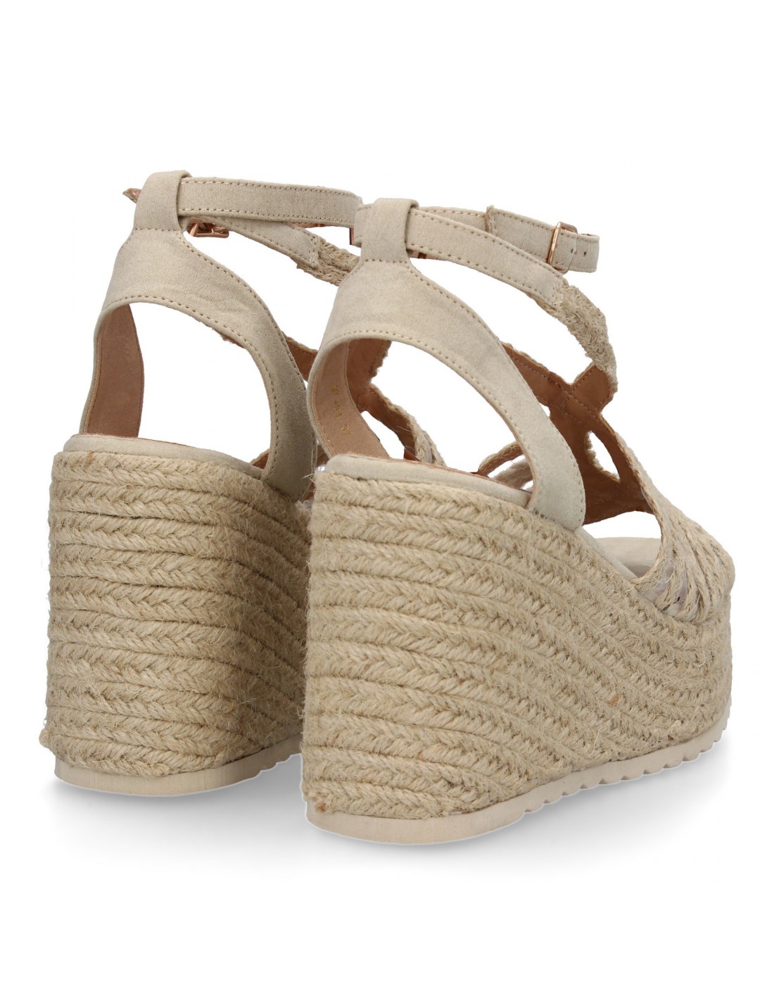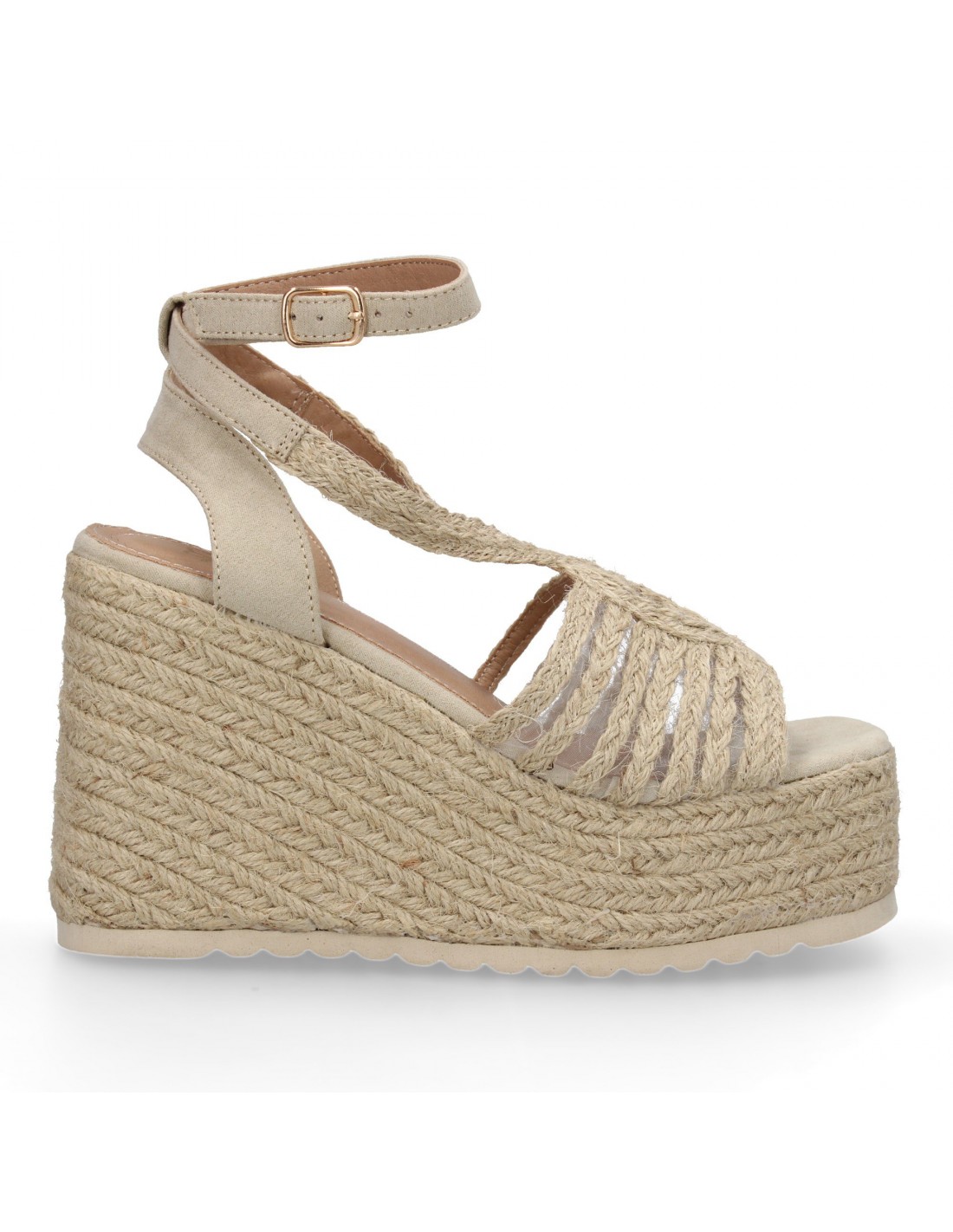 Sandalias de cuña de yute para mujer, diseño elegante y moderno con tiras cruzadas en la pala y cierre de hebilla, ideales para primavera-verano.