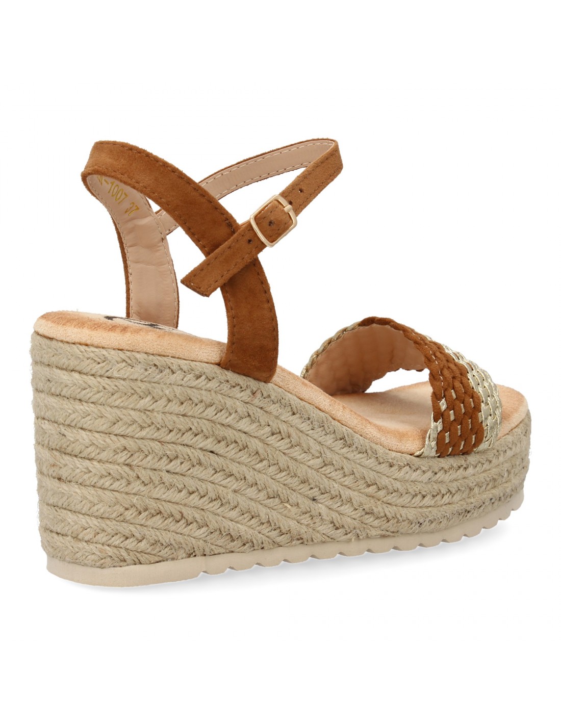 Sandalias de cuña de yute para mujer, comodas y elegantes, diseño moderno que combina dos colores en la pala, con cierre de hebilla.