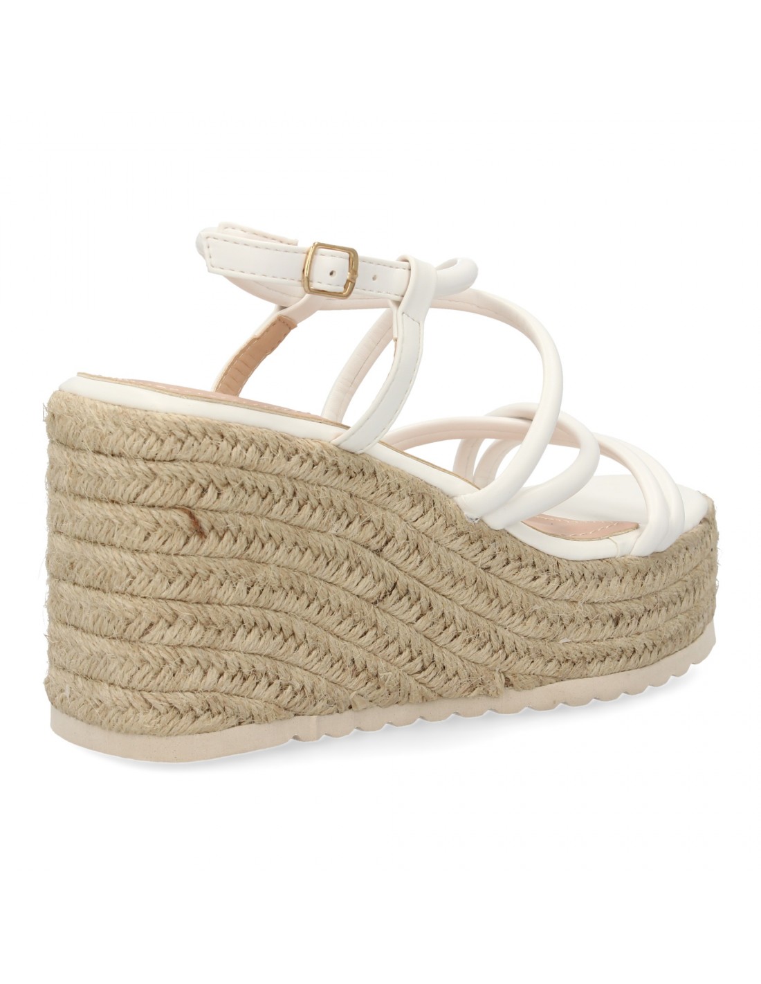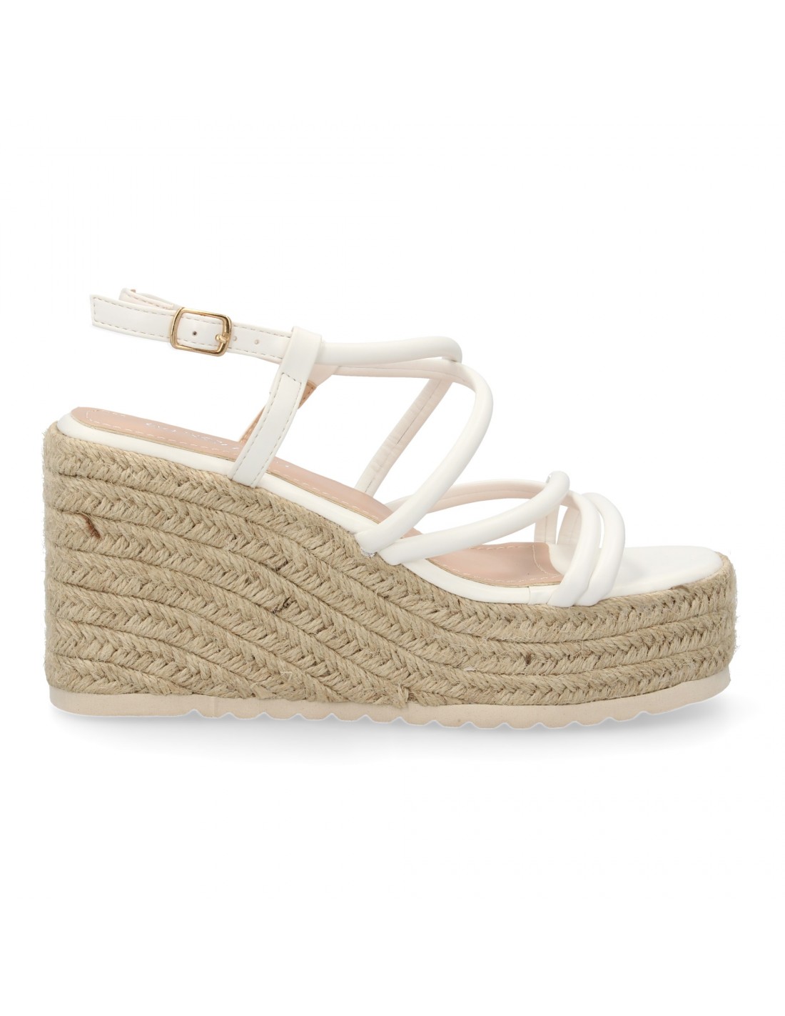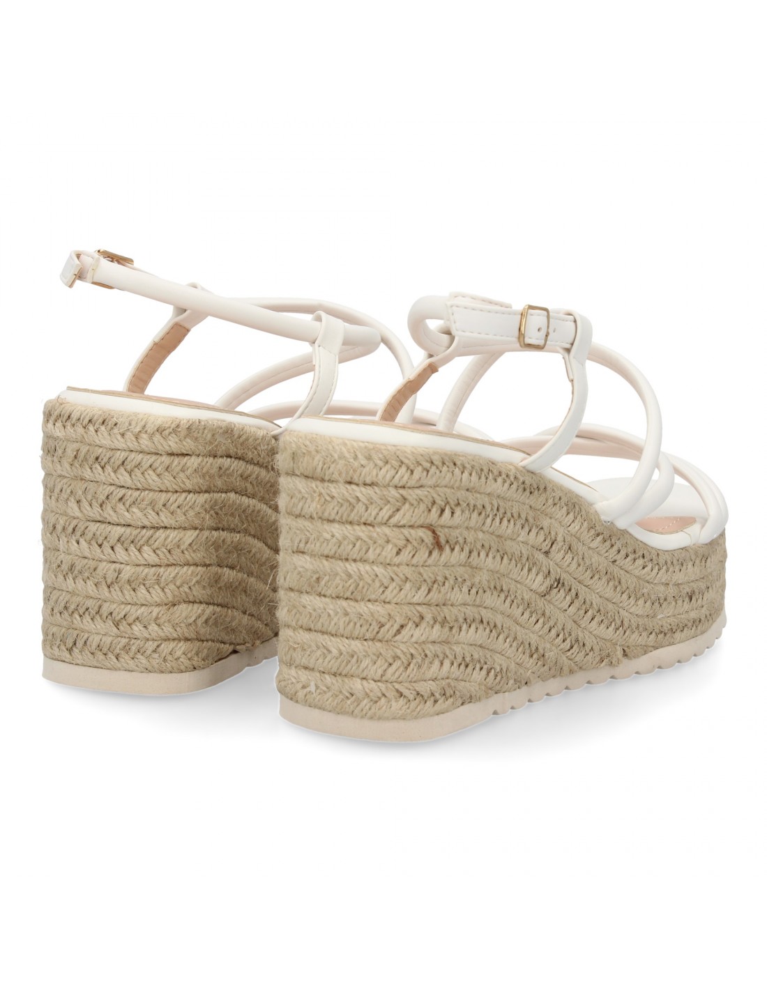 Sandalias de cuña de yute para mujer, comodas y elegantes diseño moderno con tiras cruzadas en la pala con cierre de hebilla ideales para primavera-verano.