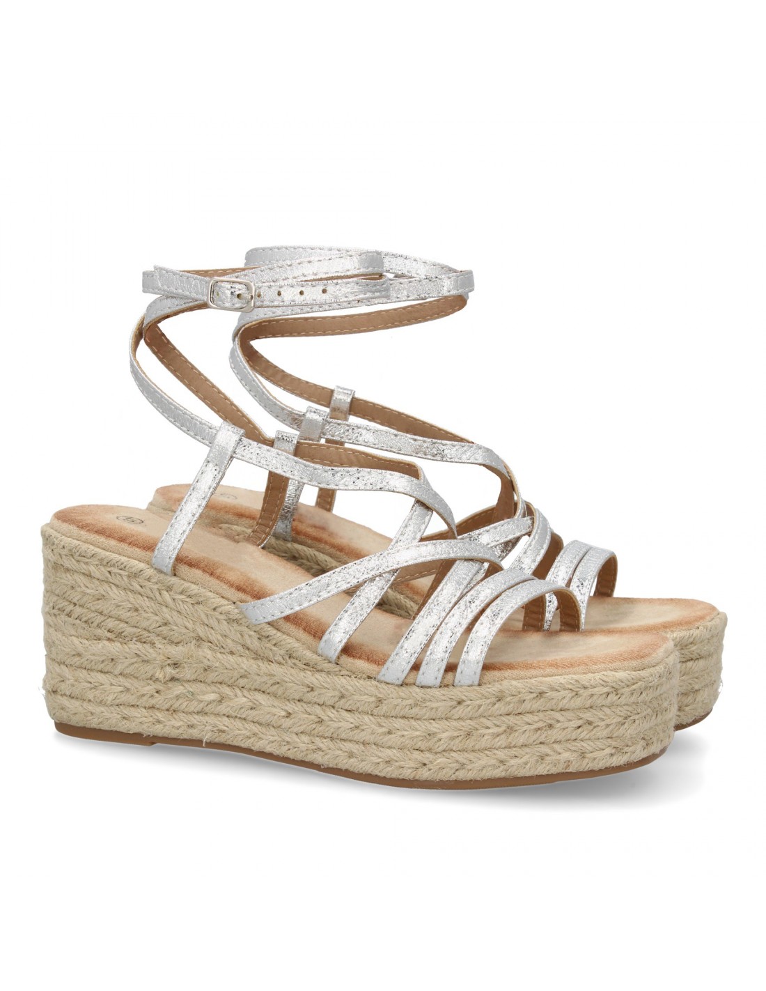 Sandalias de cuña de yute para mujer, diseño comodo y moderno con tiras cruzadas