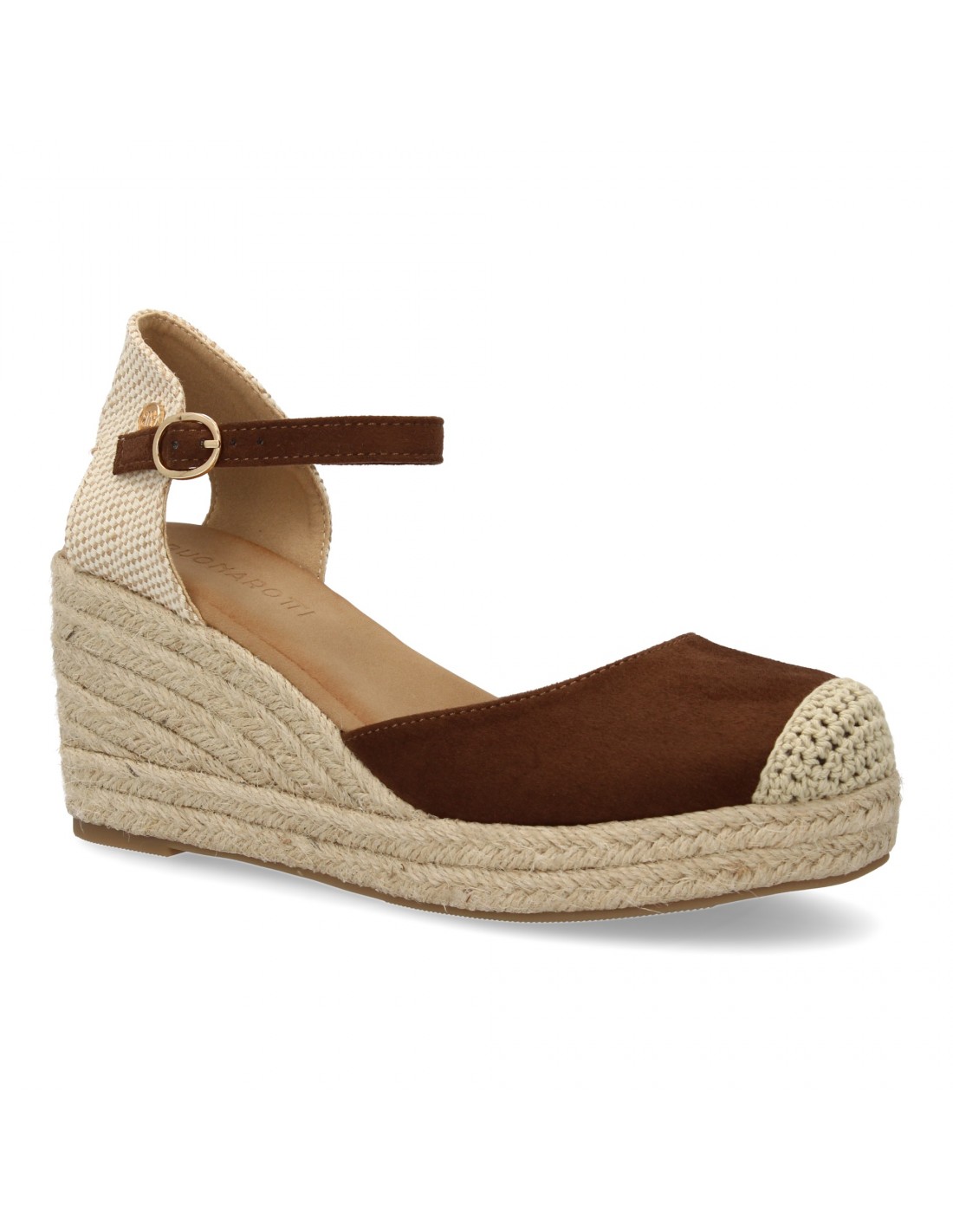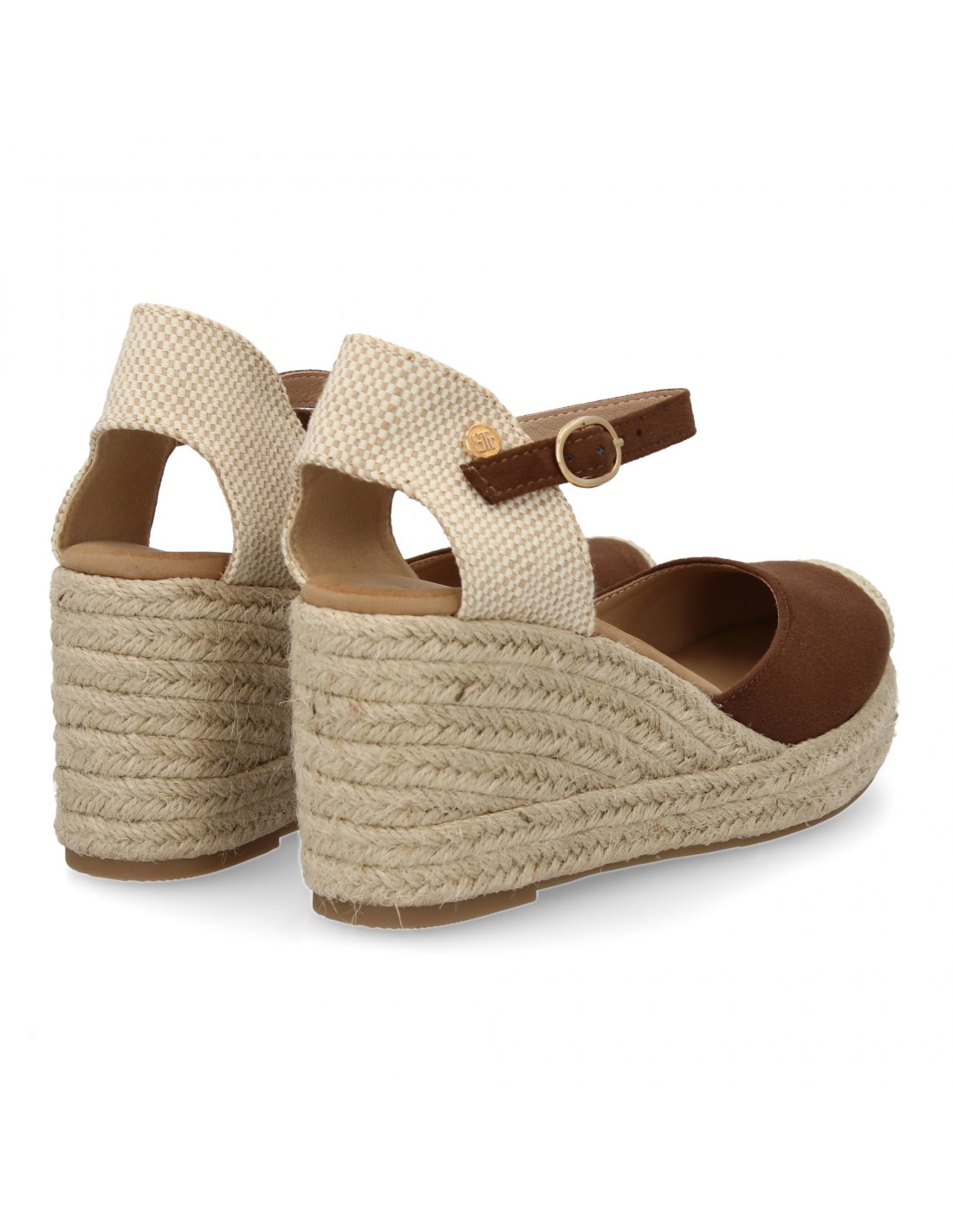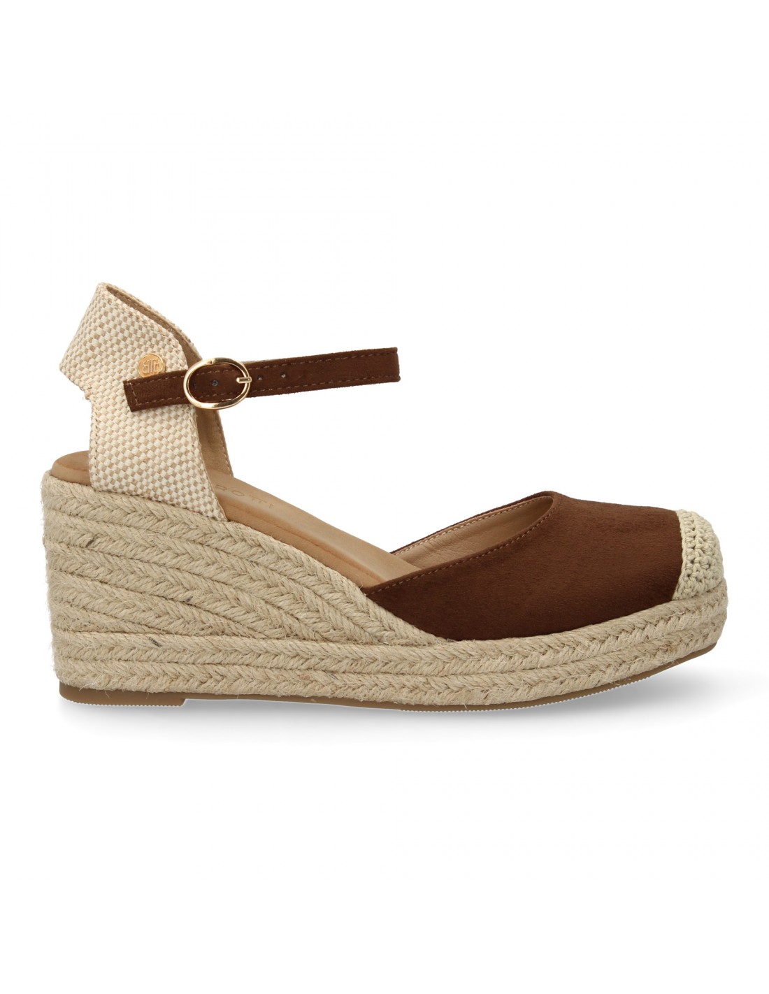 Sandalia de cuña de yute para mujer, comodas y elegantes diseño moderno con el yute en el mismo tono y con cierre de hebilla, ideales para primavera verano.