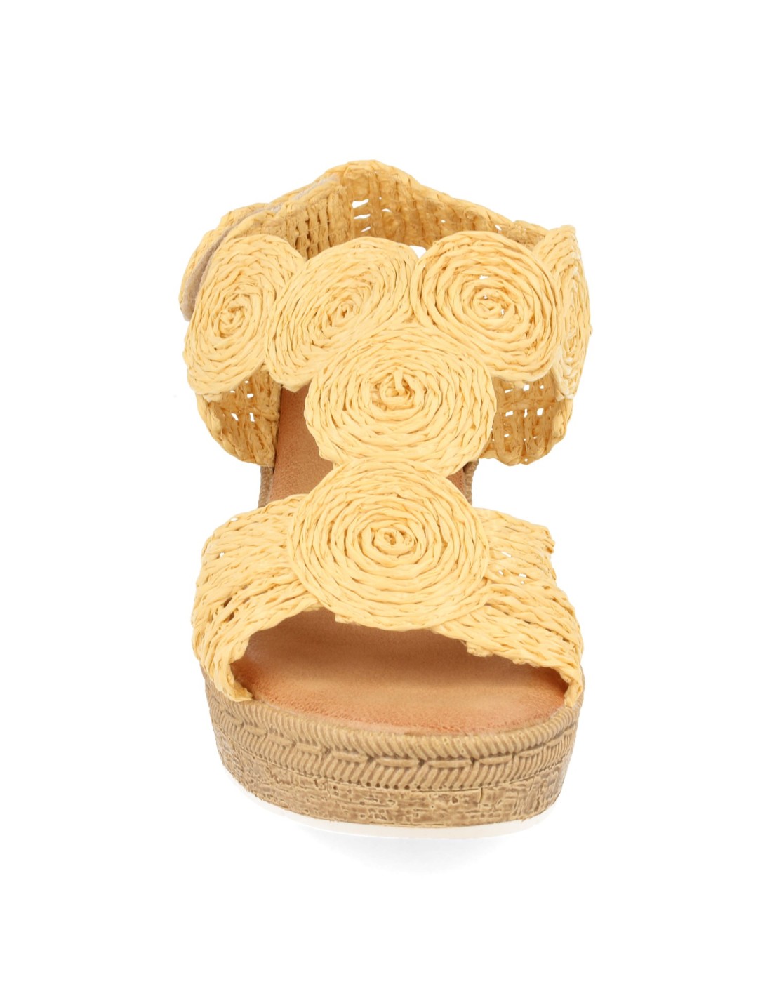 Sandalia de Cuña con Pala de Rafia y Cierre de Velcro