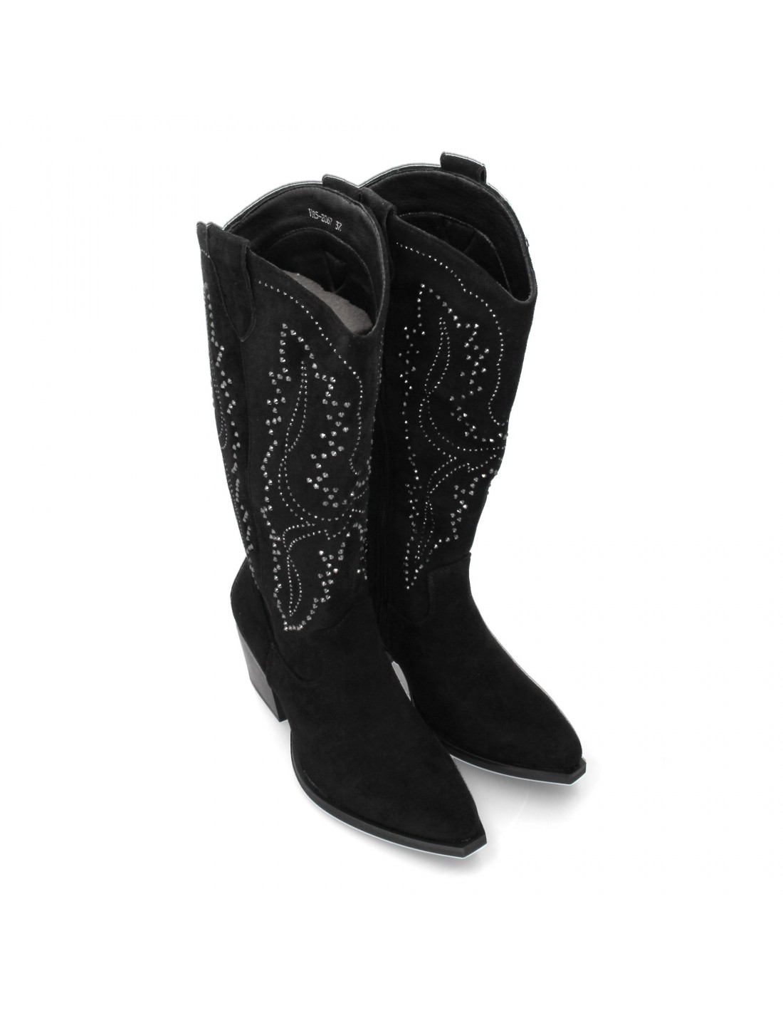Botas de mujer con diseño elegante y detalles brillantes, ideales para destacar en cualquier ocasión con su elegante silueta, sujeción cómoda gracias a su tacón cubano de 6cm. Estilo cowboy con cierre lateral de cremallera.