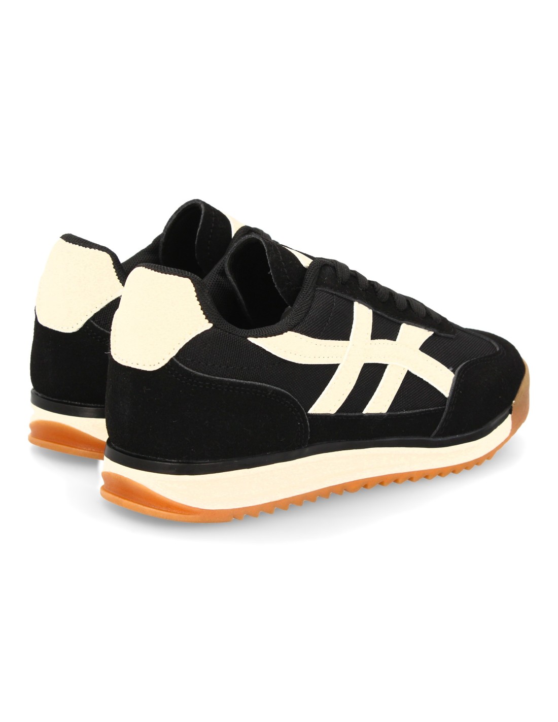Zapatilla plana para mujer con cierre de cordones. Diseño moderno con contraste lateral. Estilo retro, ideal para la temporada de otoño invierno.