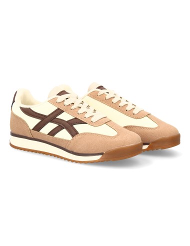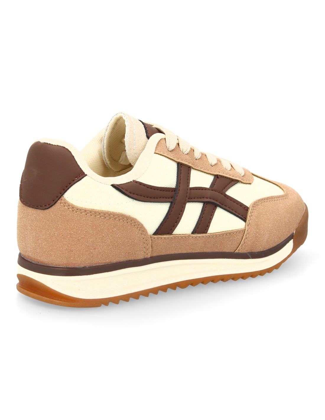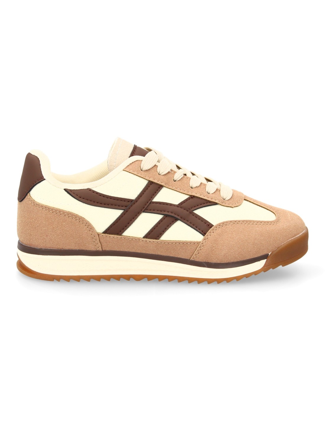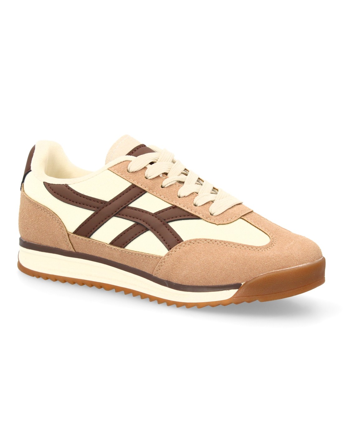 Zapatilla plana para mujer con cierre de cordones. Diseño moderno con contraste lateral. Estilo retro, ideal para la temporada de otoño invierno.
