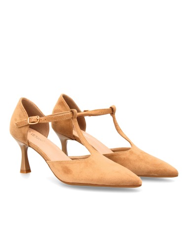 Zapato de tacón medio con tira en T para mujer. Elegante, cómodo y versátil. Con un diseño tipo salón ideal para otoño invierno. Cierre de hebilla y tacón fino.