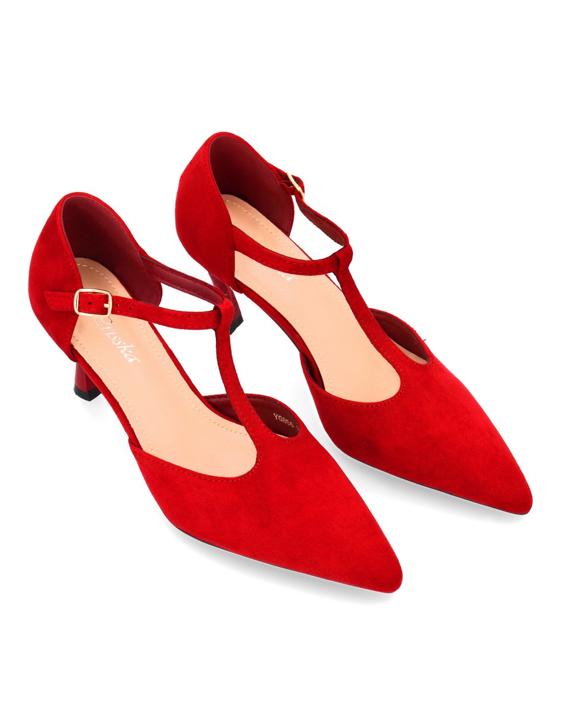 Zapato de tacón medio con tira en T para mujer. Elegante, cómodo y versátil. Con un diseño tipo salón ideal para otoño invierno. Cierre de hebilla y tacón fino.