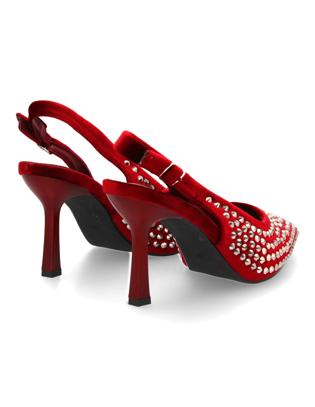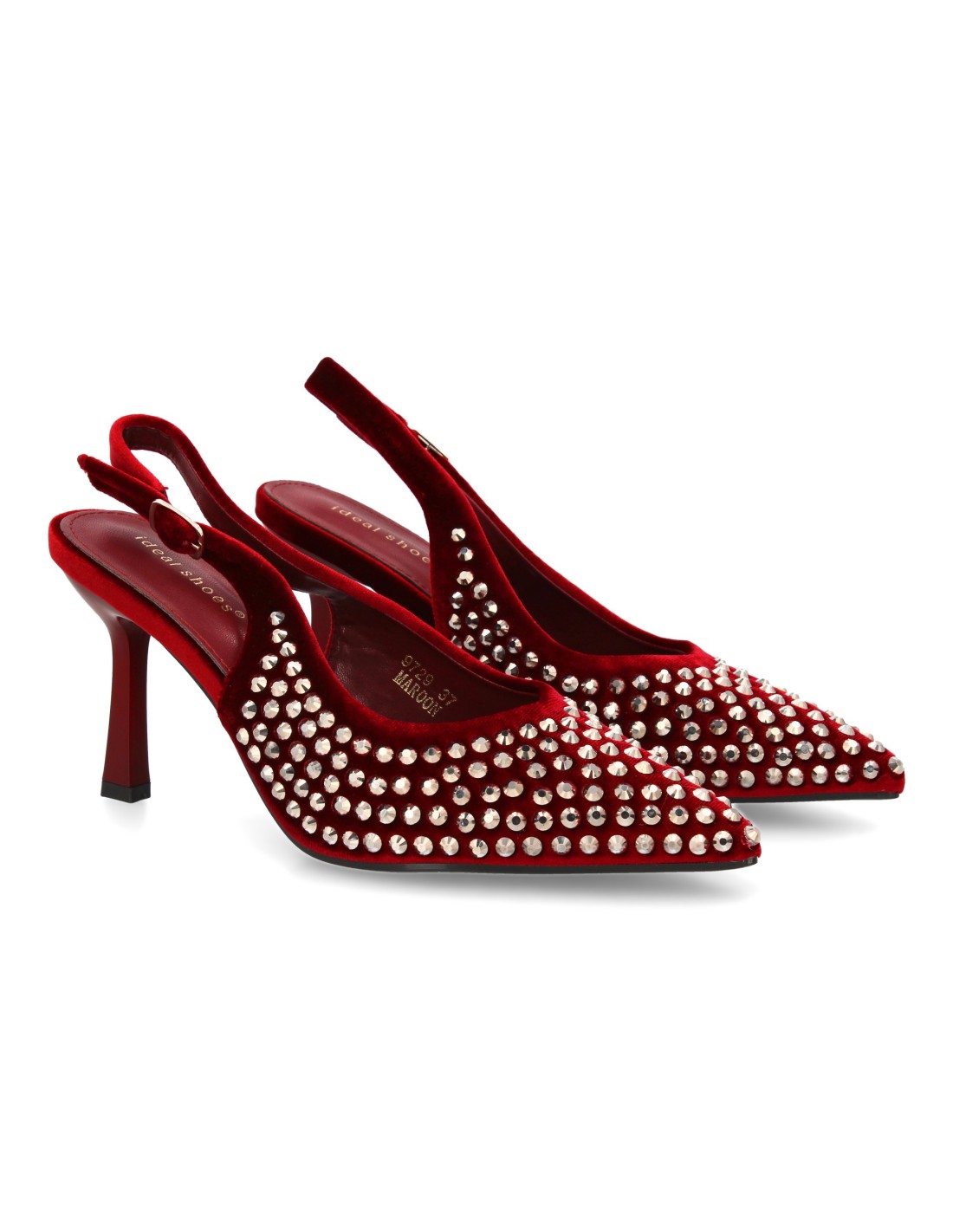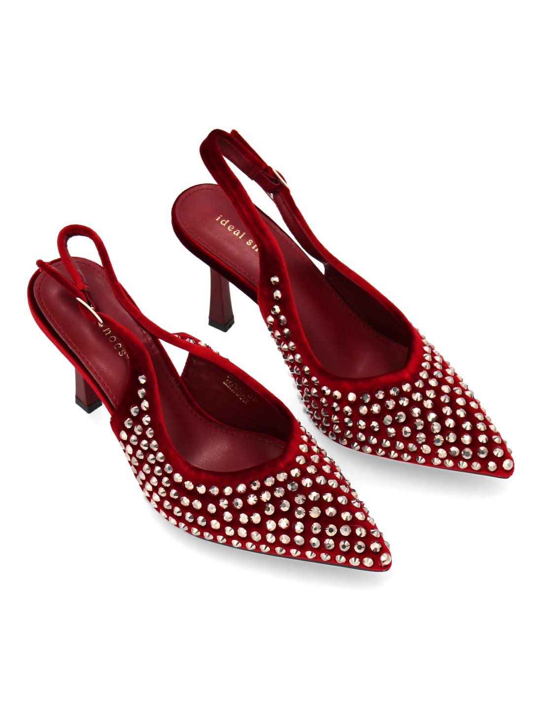 Zapatos de salón elegante con punta fina y pedreria, tacon fino y cierre de hebilla. Ideales para mujer en eventos de la temporada Otoño invierno.