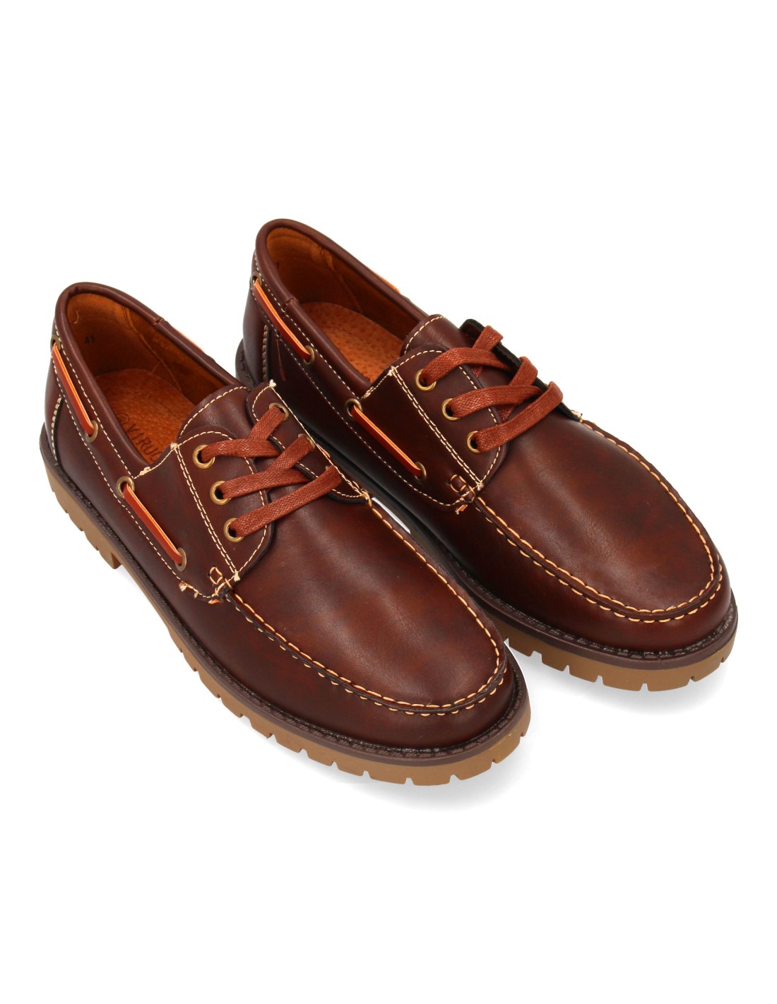 Zapatos náuticos para Hombre, Estampado liso, costuras visibles, ojales metálicos y cierre de cordones, suela de goma dentada para un agarre seguro.