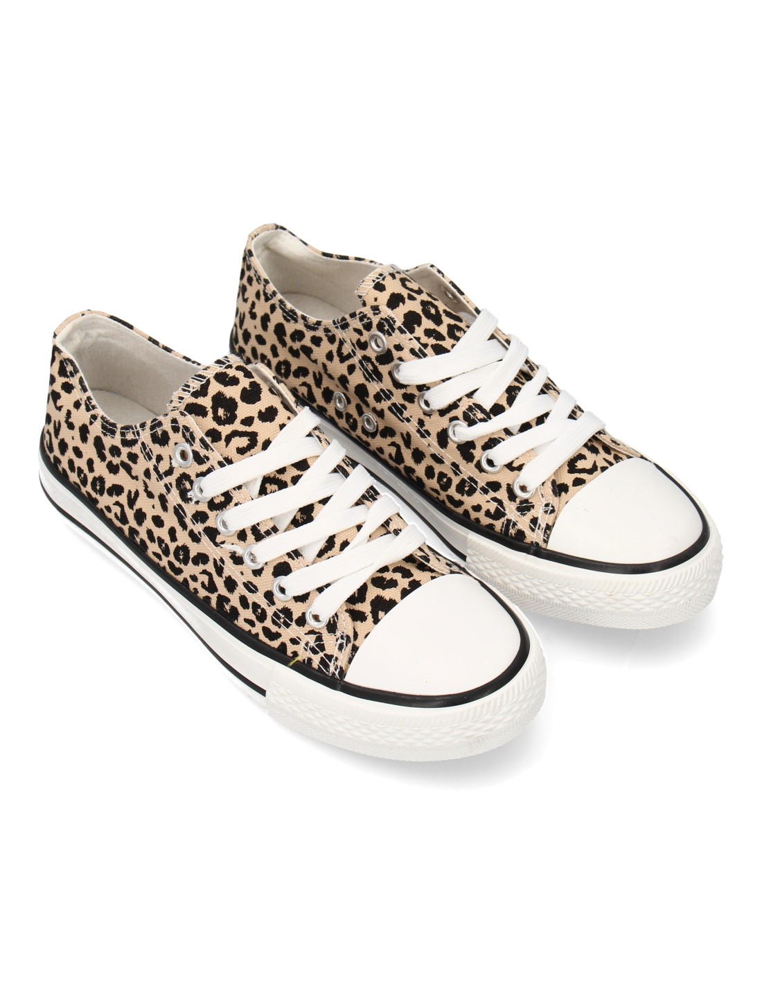 Zapatilla Plana de Mujer, Comoda, con Material de Lona, Estilo Bamba Casual, y Cierre de Cordones