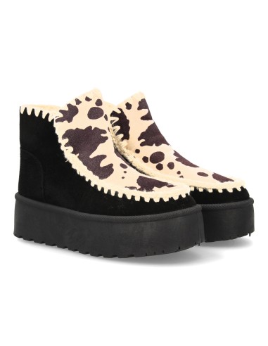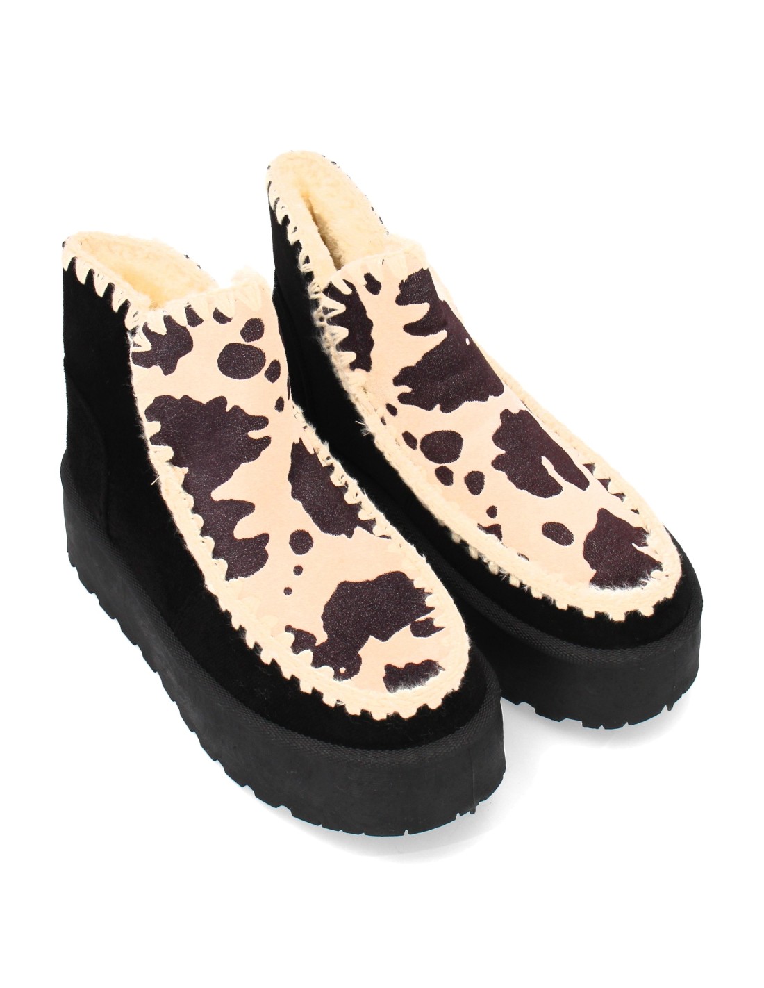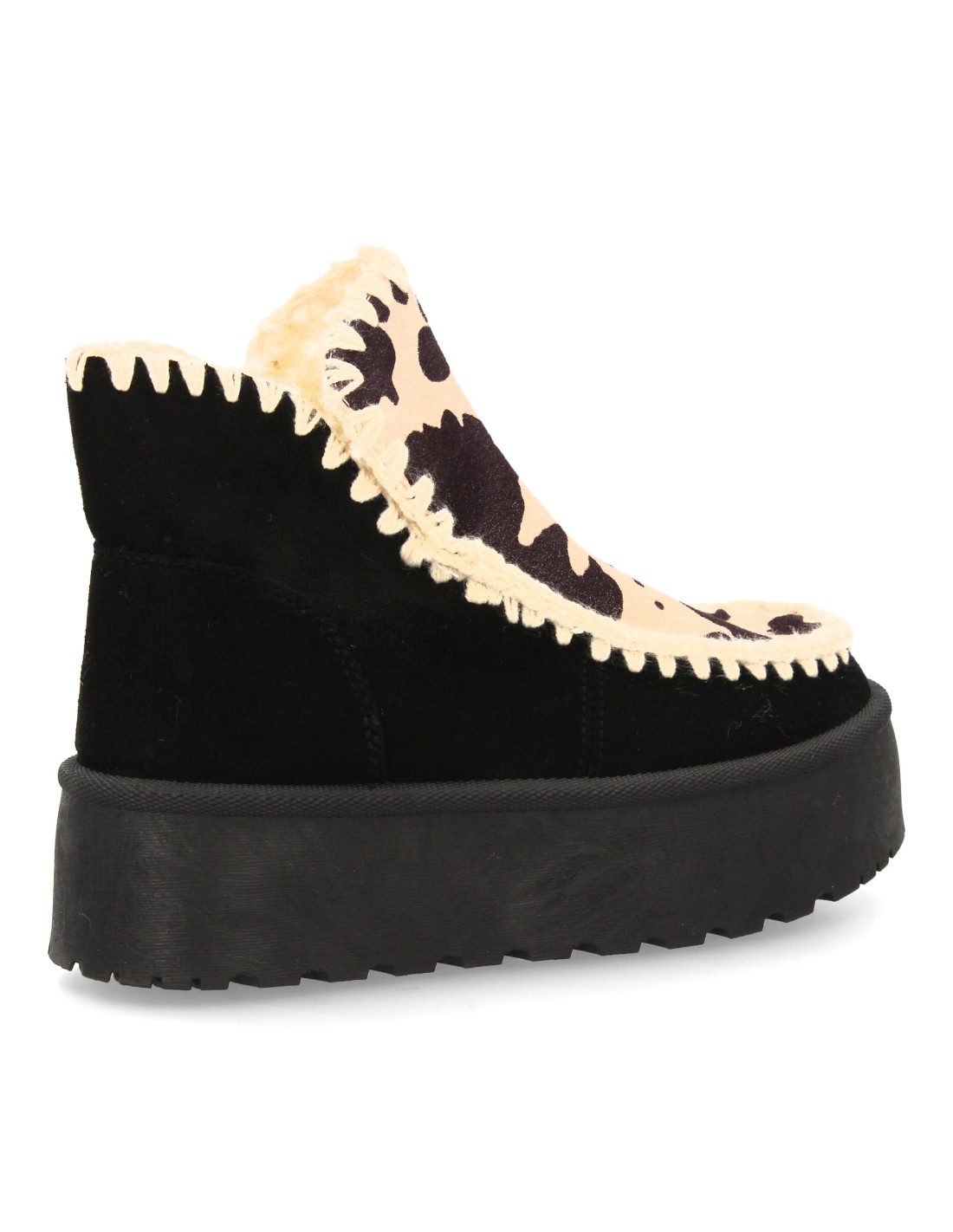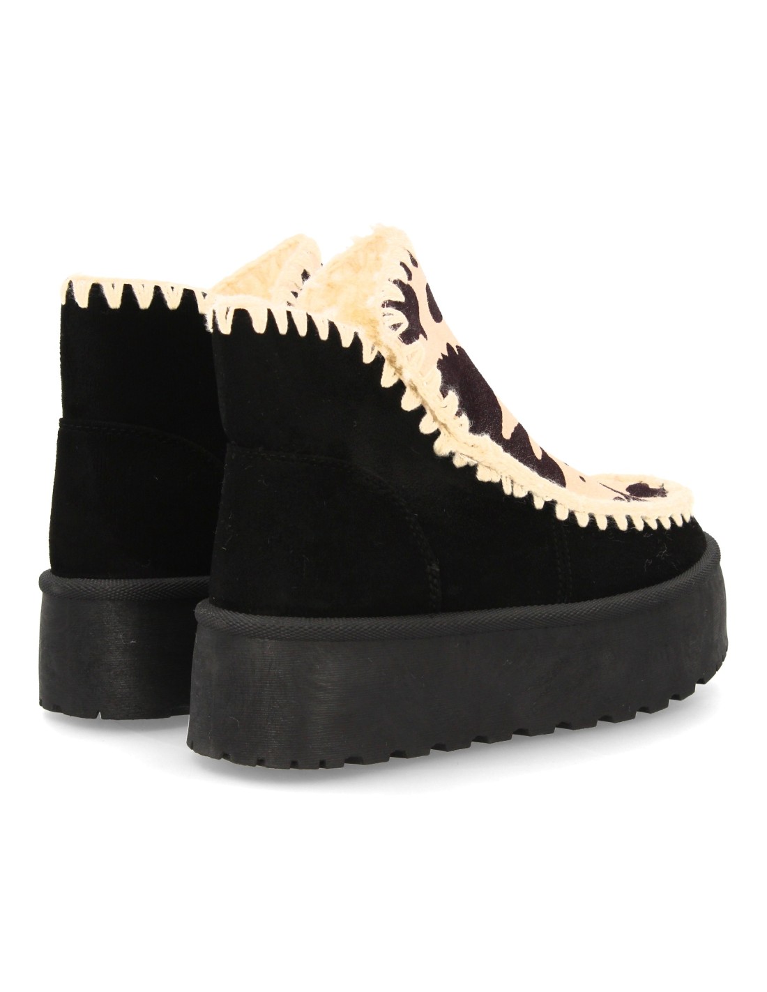 Botin de mujer australiano con plataforma, ideal dias frios temporada Otoño Invierno. Forrado borreguillo, costuras gruesas decorativas, diseño artesanal.