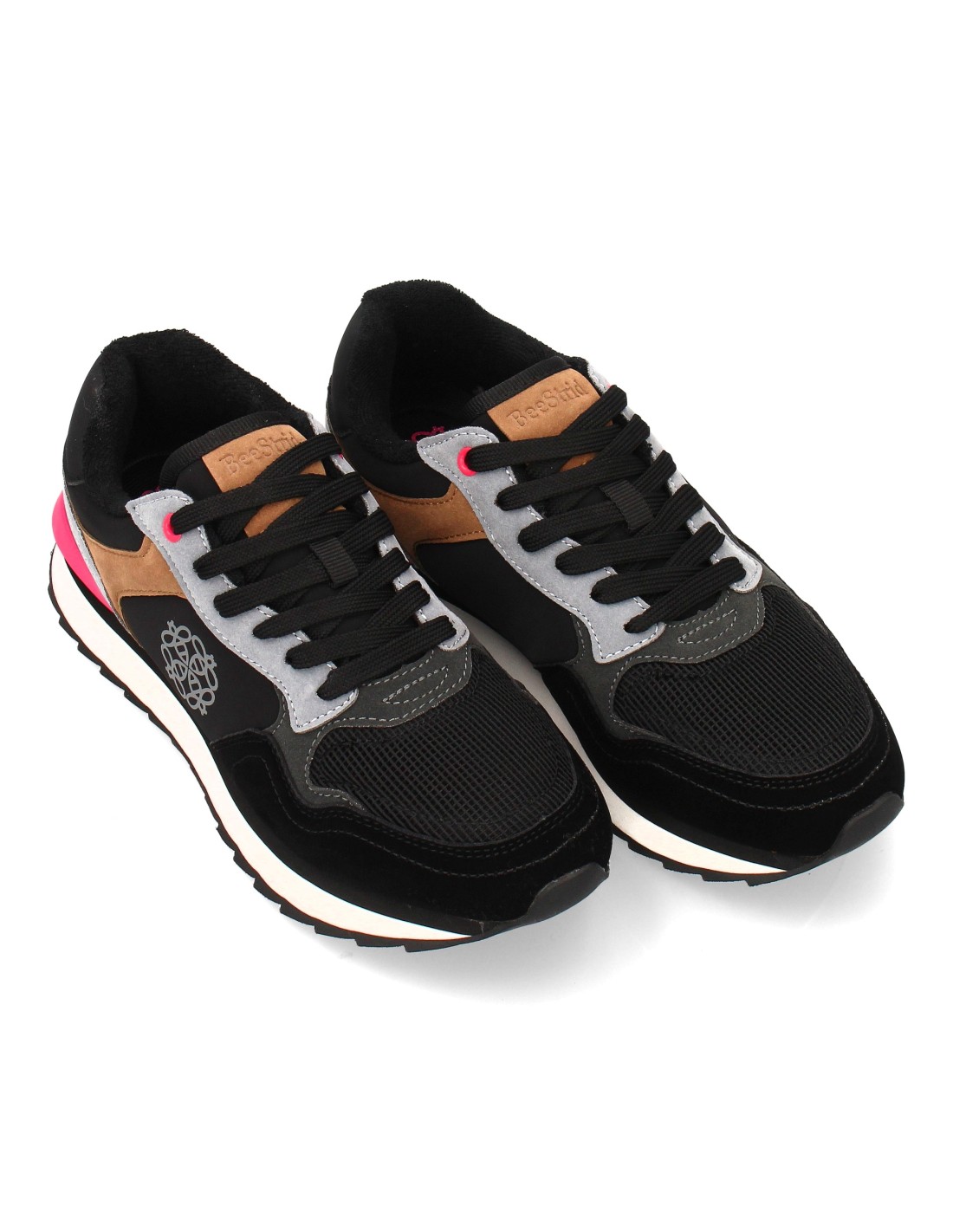 Zapatilla deportiva para mujer con diseño moderno combina diferentes texturas. Malla transpirable en la parta frontal. Ideal para mujer en cualquier temporada. Cierre de cordones.