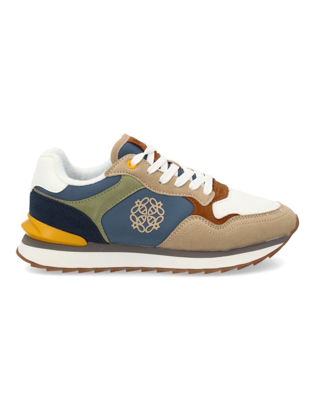 Zapatilla deportiva para mujer con diseño moderno combina diferentes texturas. Malla transpirable en la parta frontal. Ideal para mujer en cualquier temporada. Cierre de cordones.