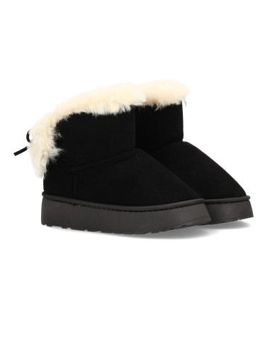 Bota para invierno con exterior de acabado afelpado y detalle de borreguito,que aporta un look cálido y acogedor. Suela de plataforma antideslizante. Ideal para mujer.