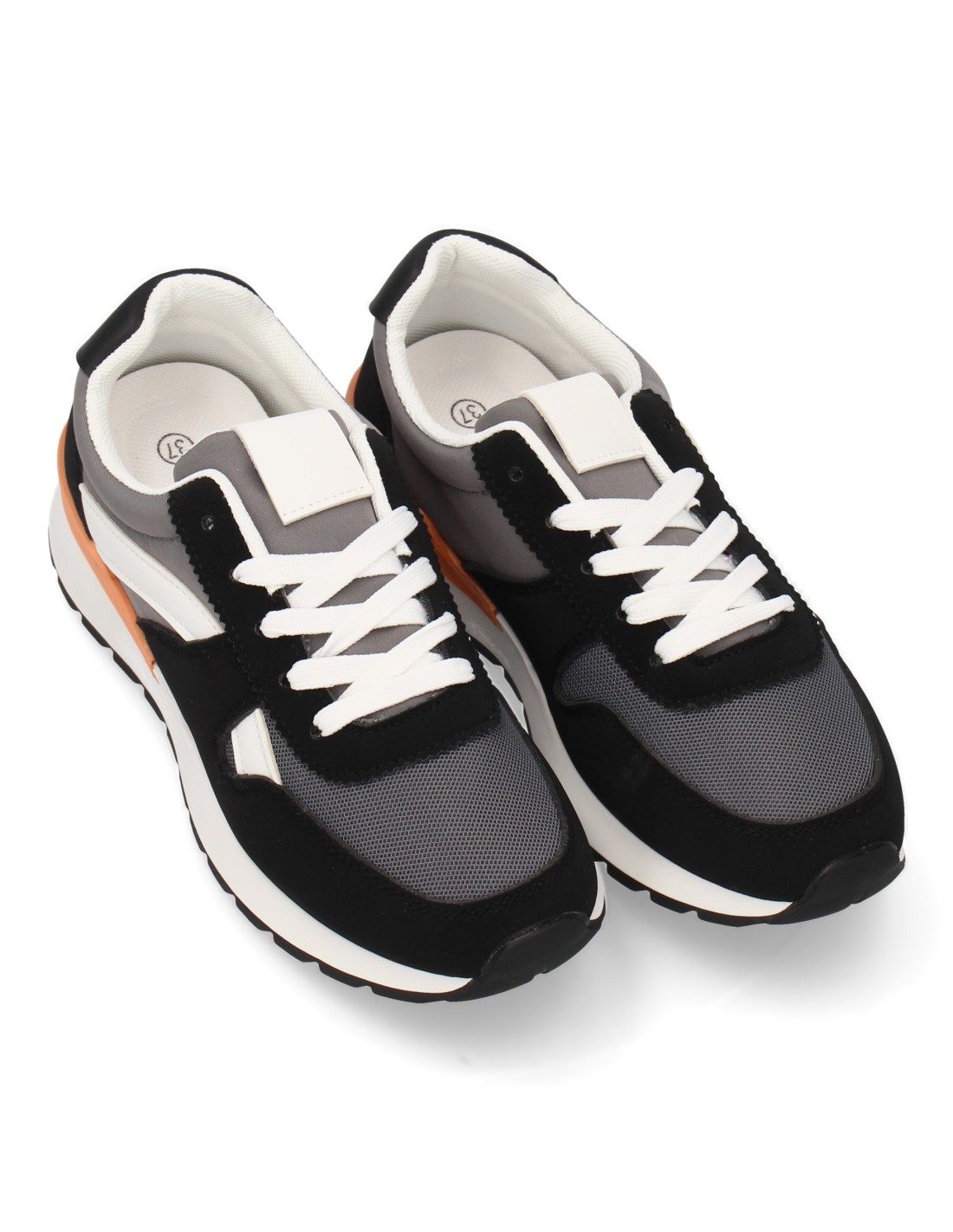 Zapatillas deportivas estilo urbano con diseño multicapas y malla transpirable en el empeine. Suela ligera con amortiguación, Cierre de cordones. Ideal para mujer, uso diario.
