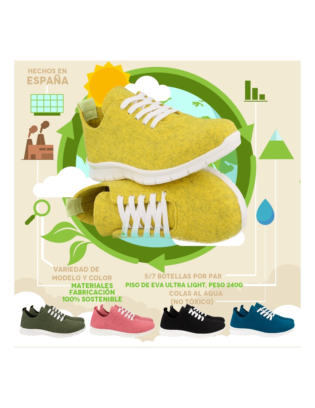 Zapatillas ecológicas para Mujer, Fabricadas con materiales 100% reciclados y Ecológicos.