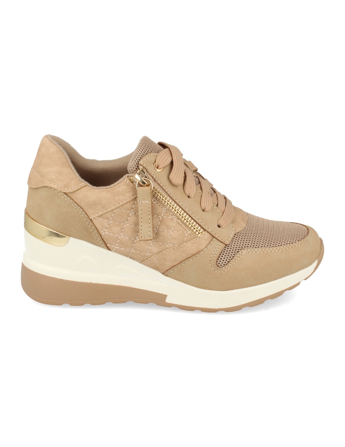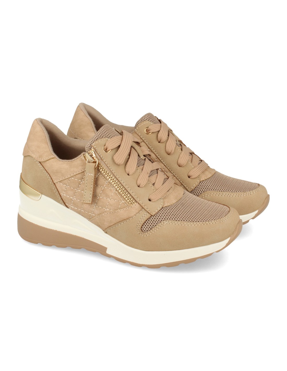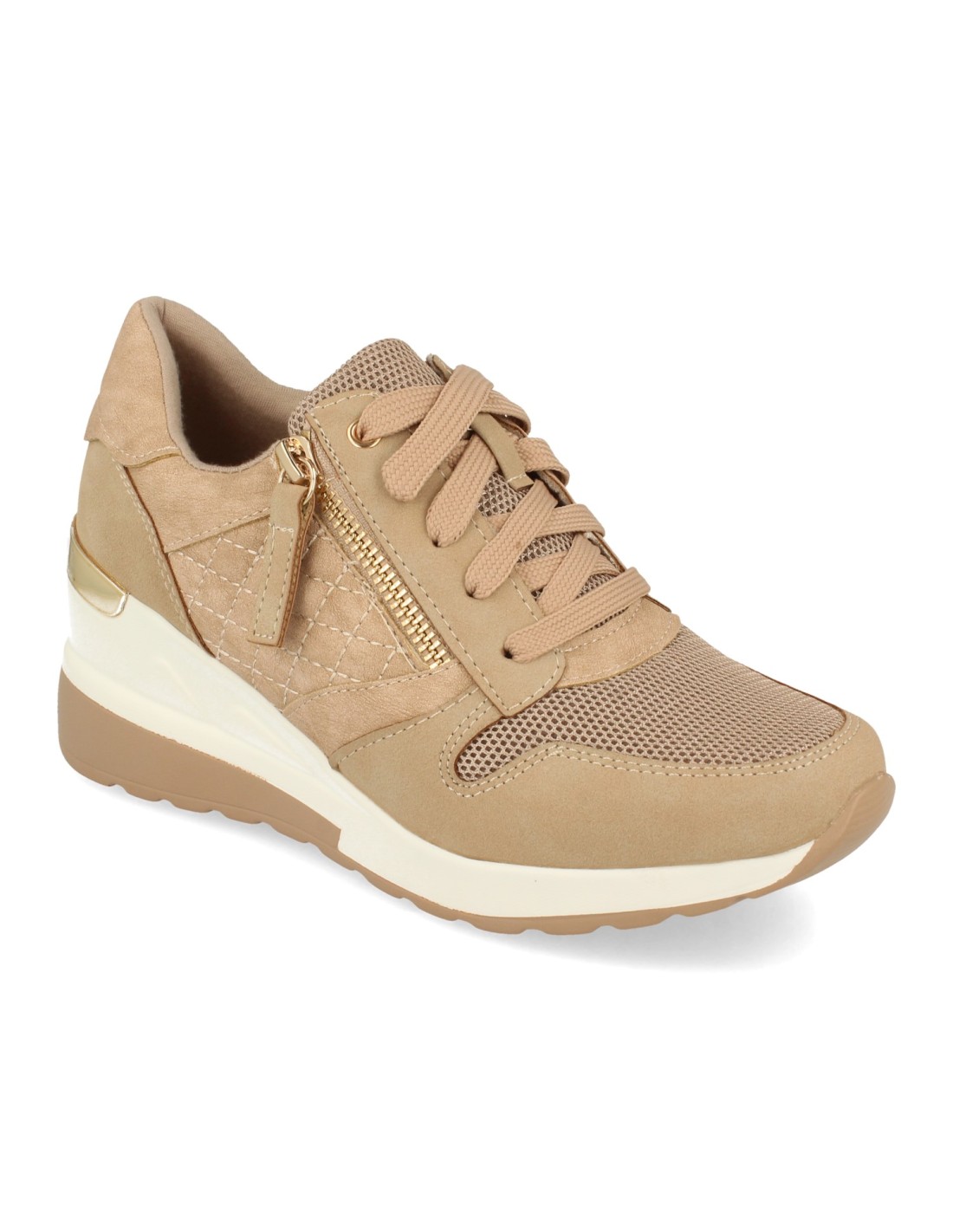 Zapatilla para Mujer, con Cuña, Cremallera de Adorno, y Cierre de Cordones, Primavera Verano 2022