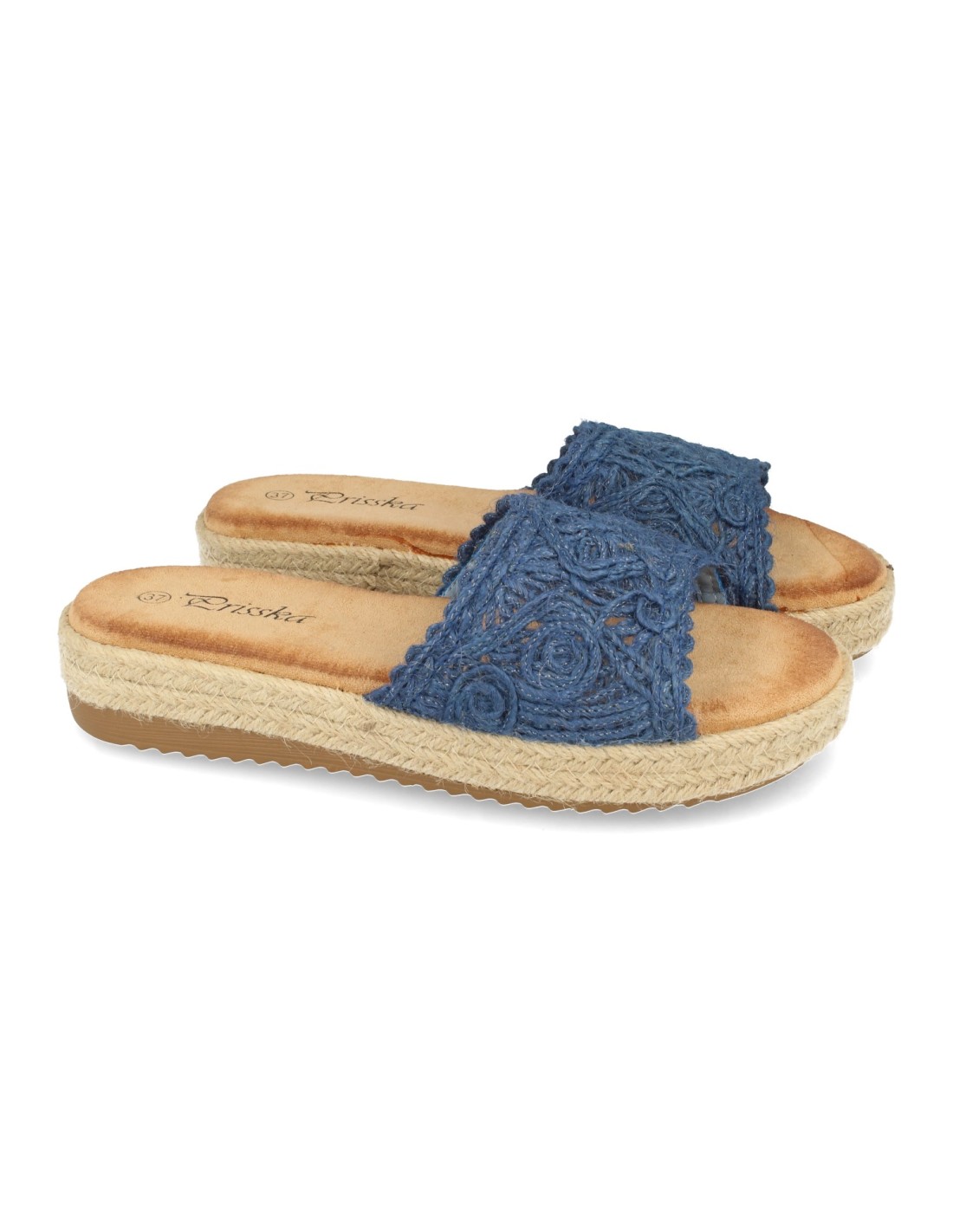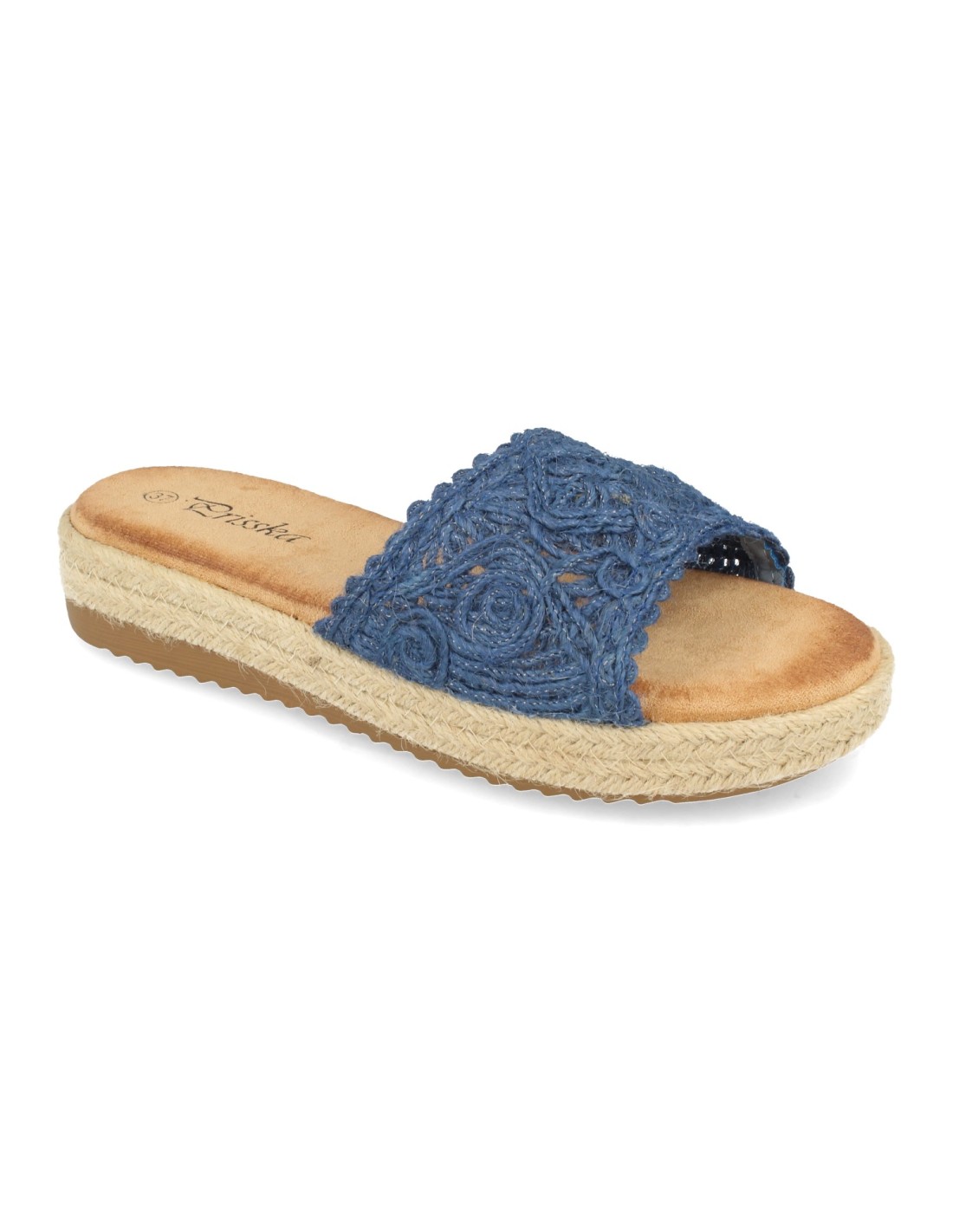 Sandalia Plana para Mujer, con Yute, y Pala de Rafia, Primavera Verano 2021