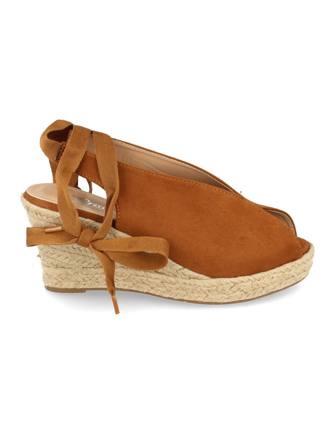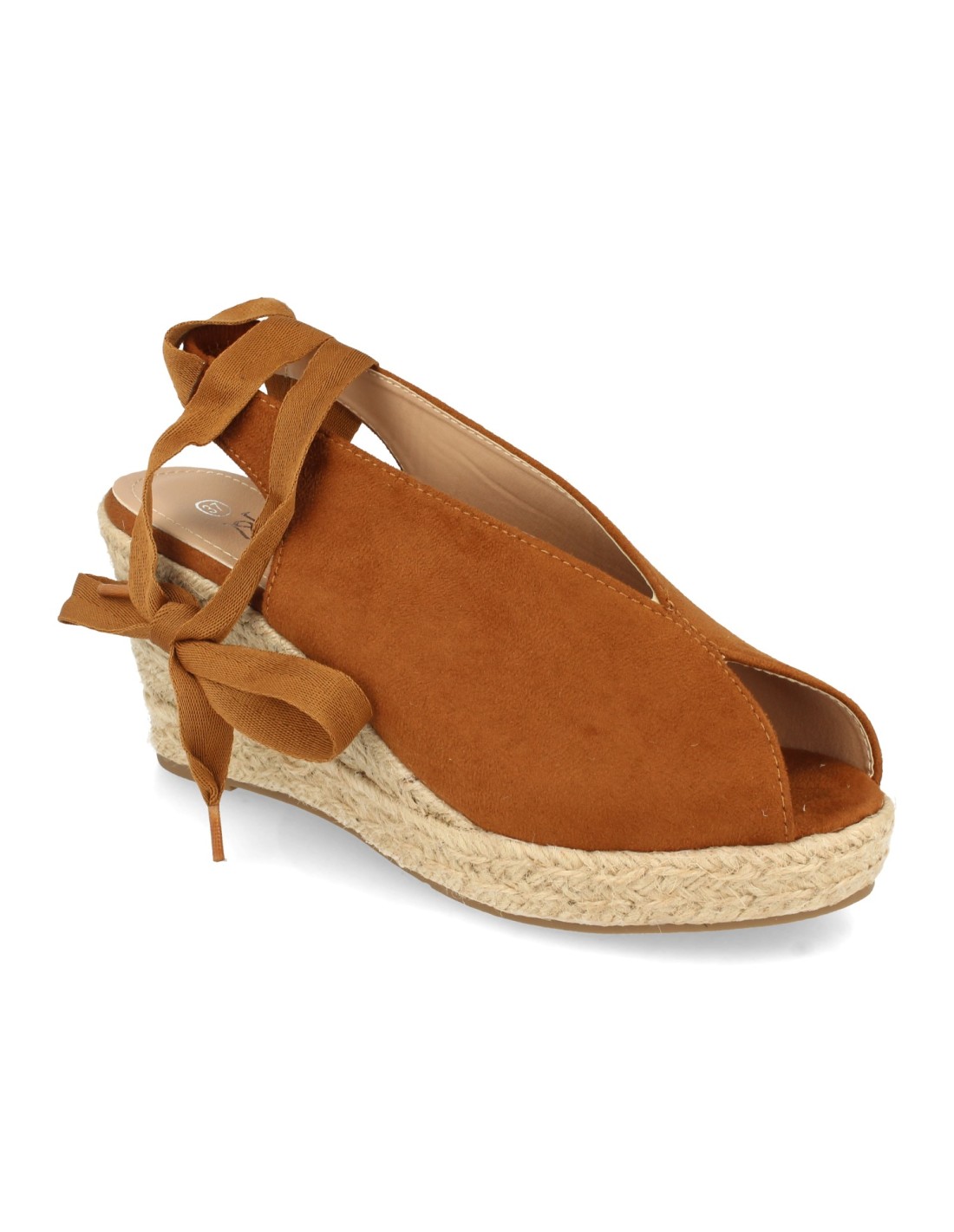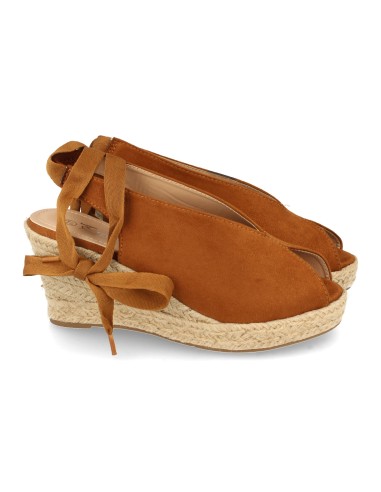 Sandalia de Cuña para Mujer, Forrada de Yute, con Punta y Empeine Abierto, Cierre de Cordones en el Tobillo, Primavera Verano 2021