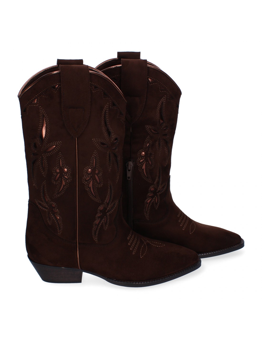 Botas de Mujer Elegantes con Tacón Campero y Adornos Bordados, Cierre Lateral con Cremallera, Puntera Fina
