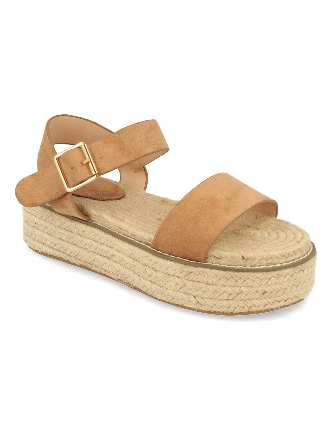Sandalia de Plataforma para Mujer, Forrada de Yute, Comodas, con Pala Simple, y Cierre de Hebilla, Primavera Verano 2021