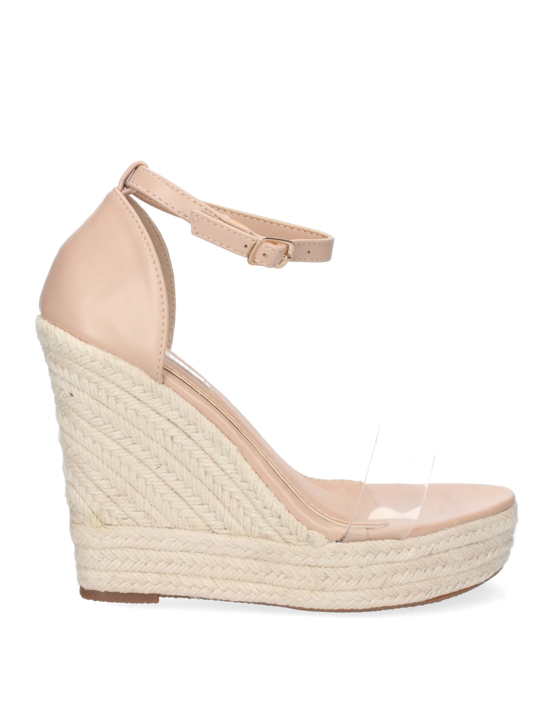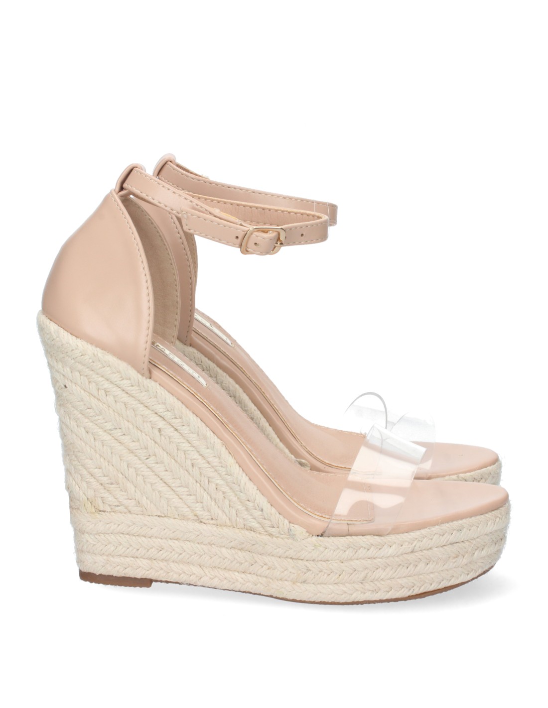 Sandalia de Cuña para Mujer, Forrado de Yute, con Pala Transparente, y Cierre de Hebilla, Primavera Verano 2022