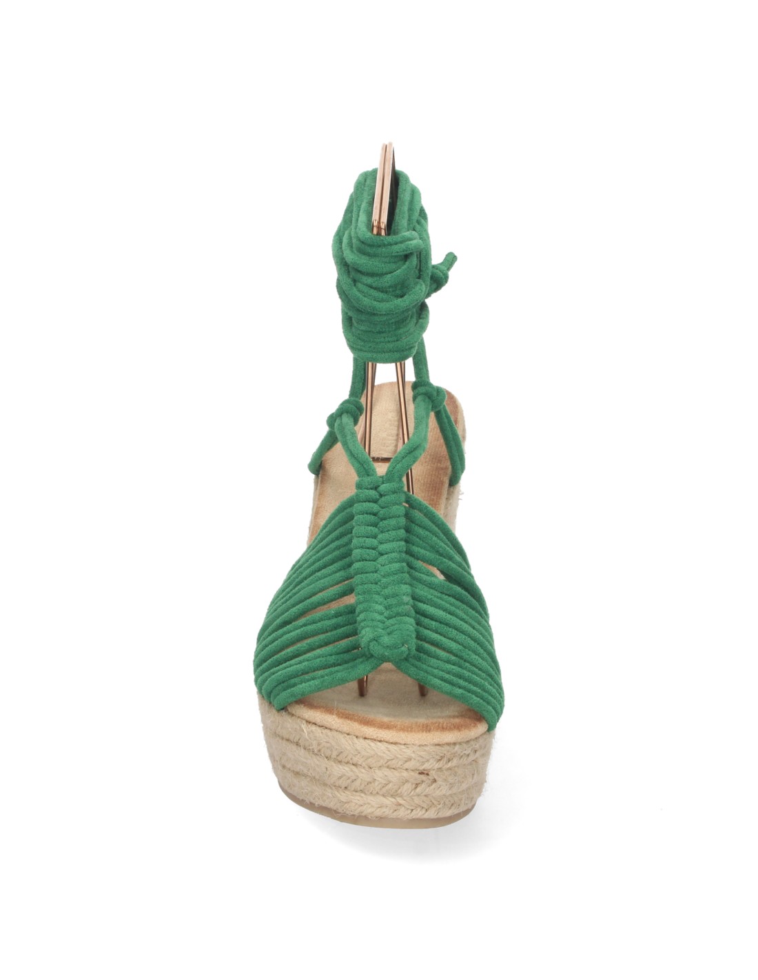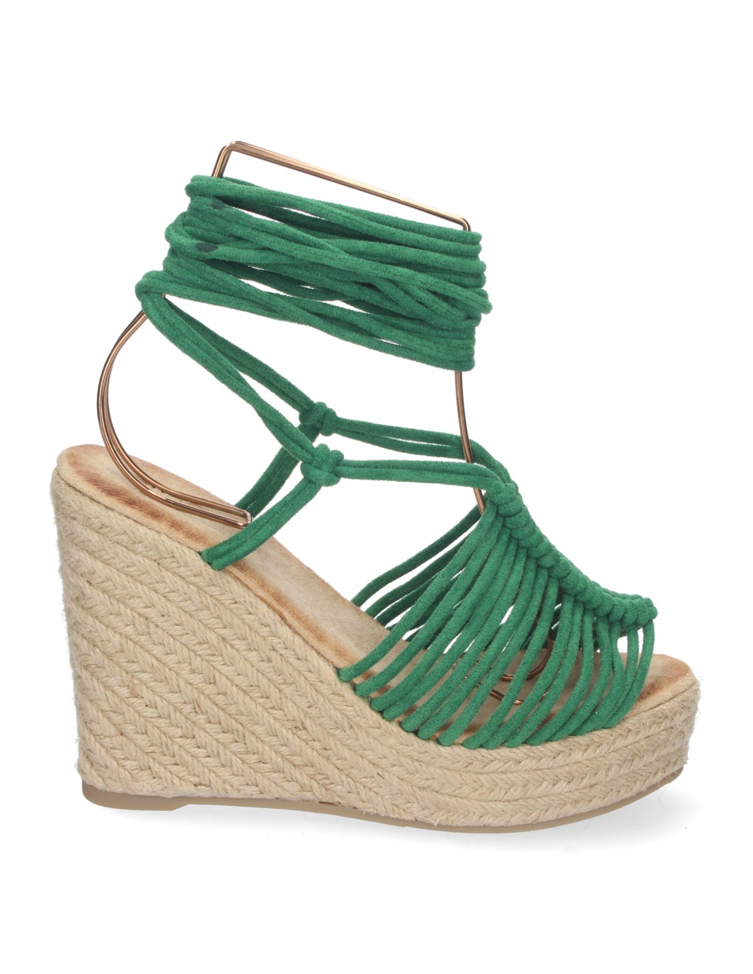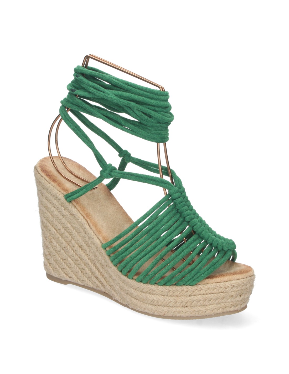 Sandalia de Cuña para Mujer, Forrada de Yute, con Pala de Tiras, y Cierre de Cordones, Primavera Verano 2022