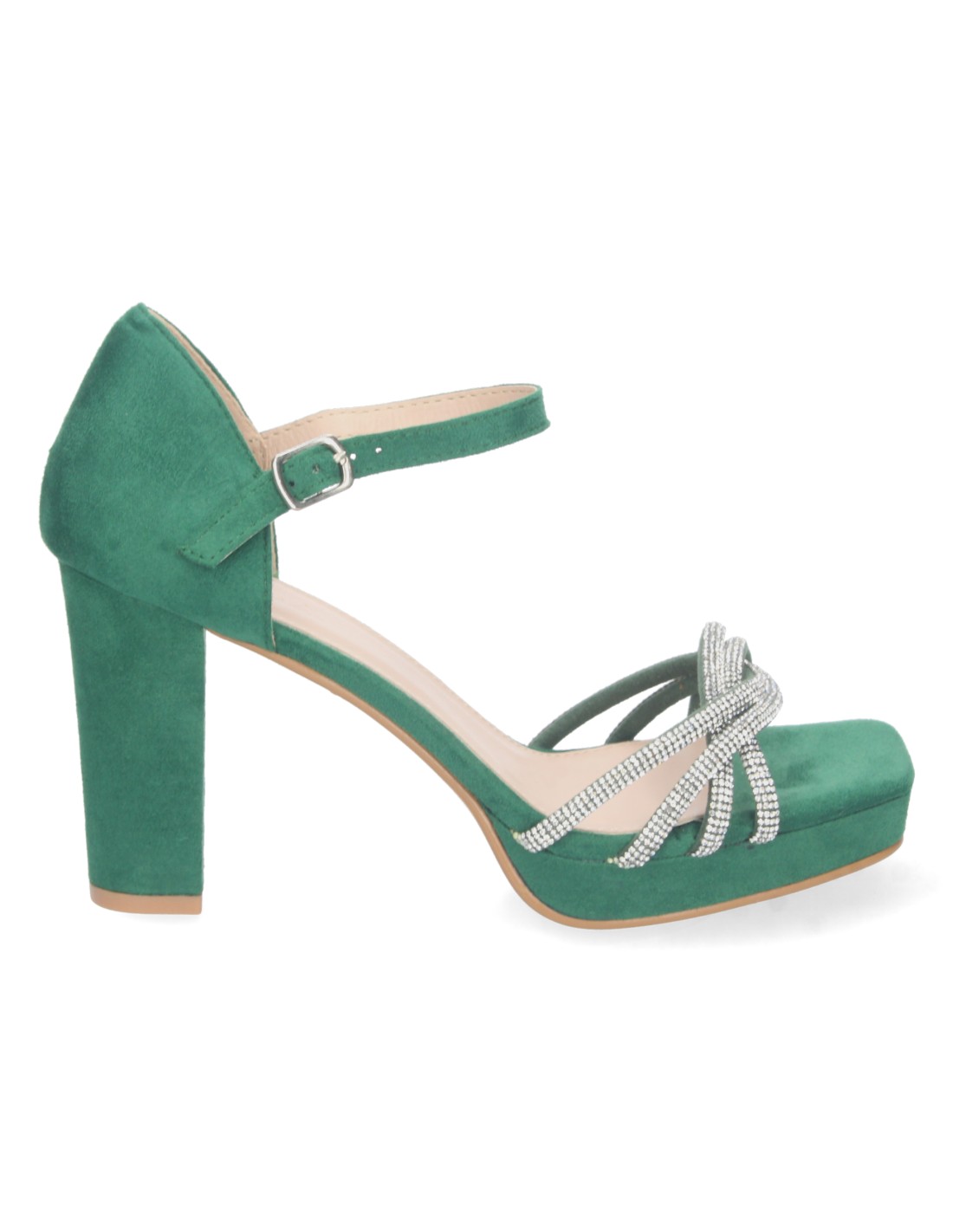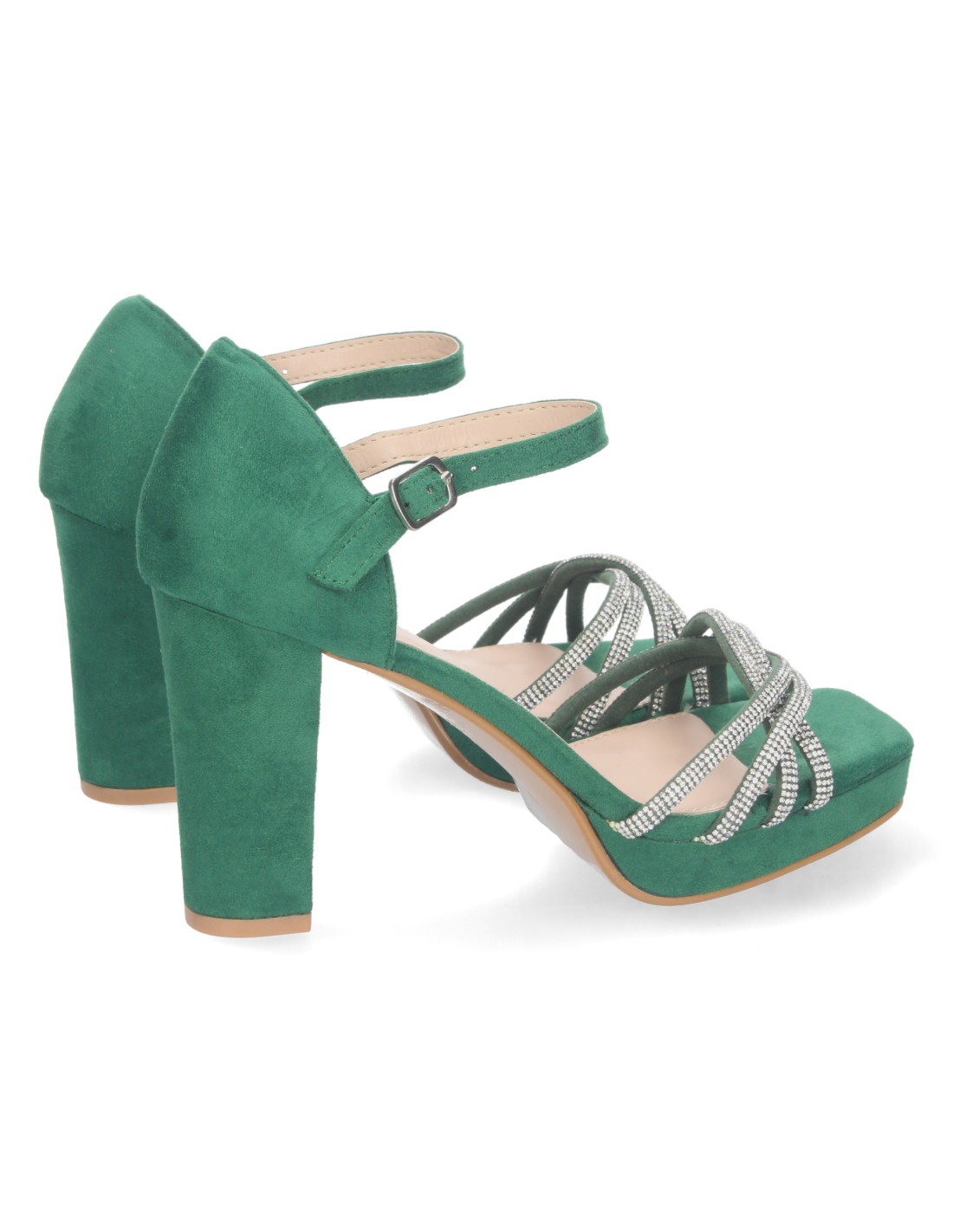 Sandalia de Tacon para Mujer, Comodo, Palas con Strass, y Cierre de Cremallera, Primavera Verano 2023