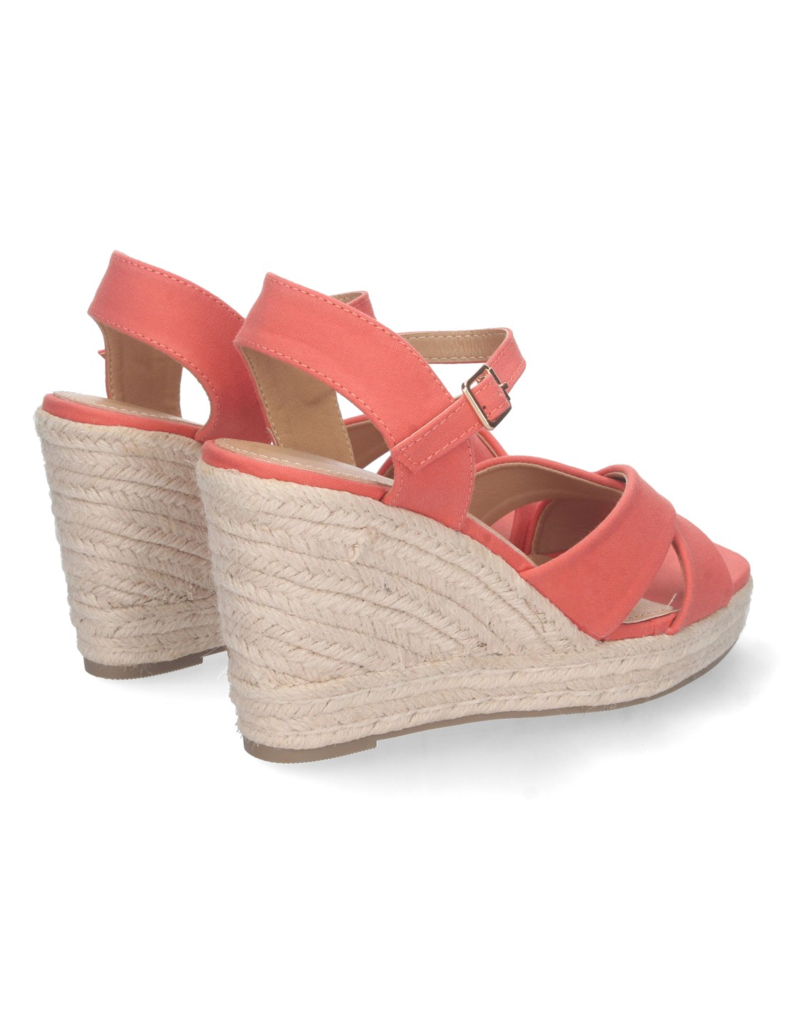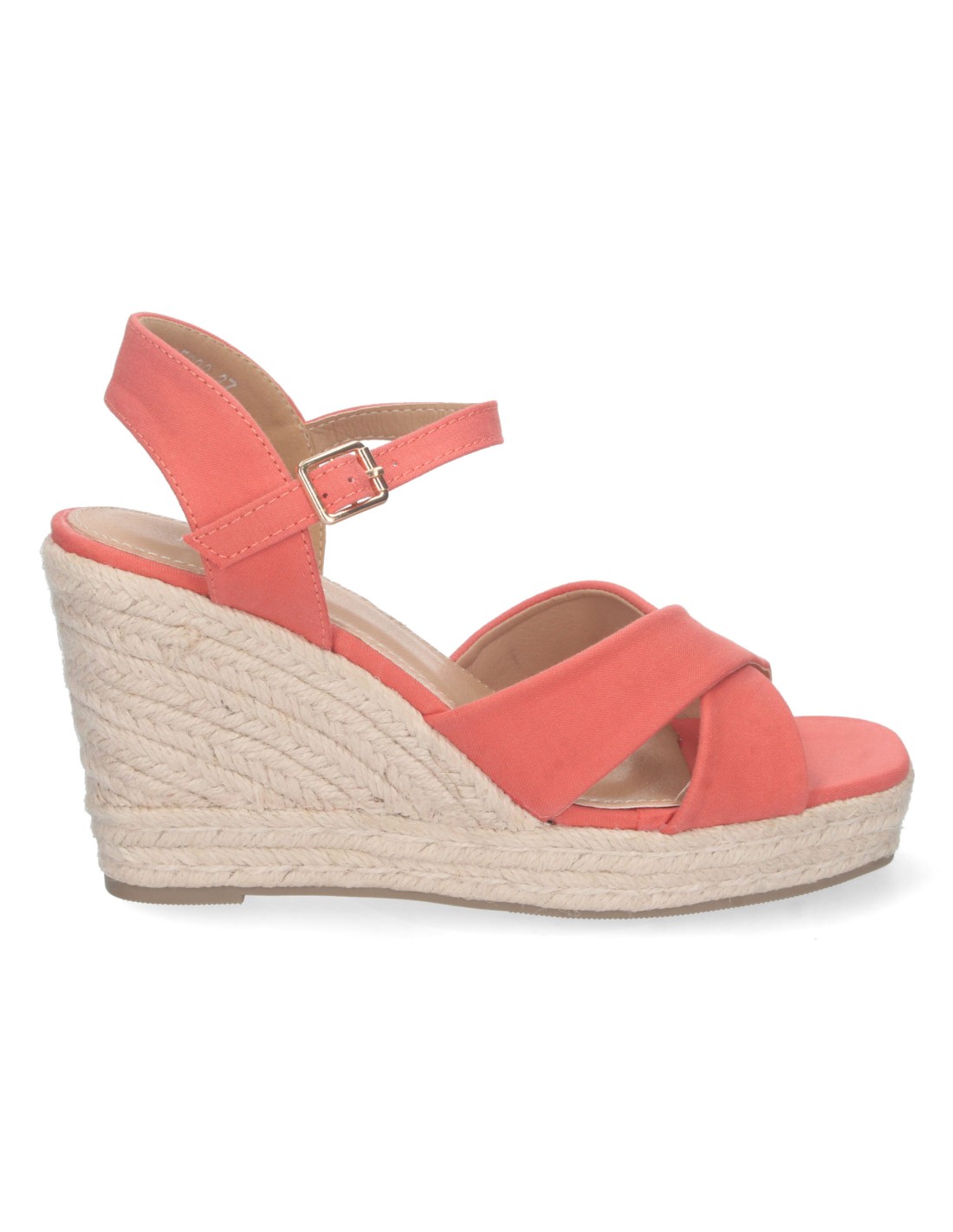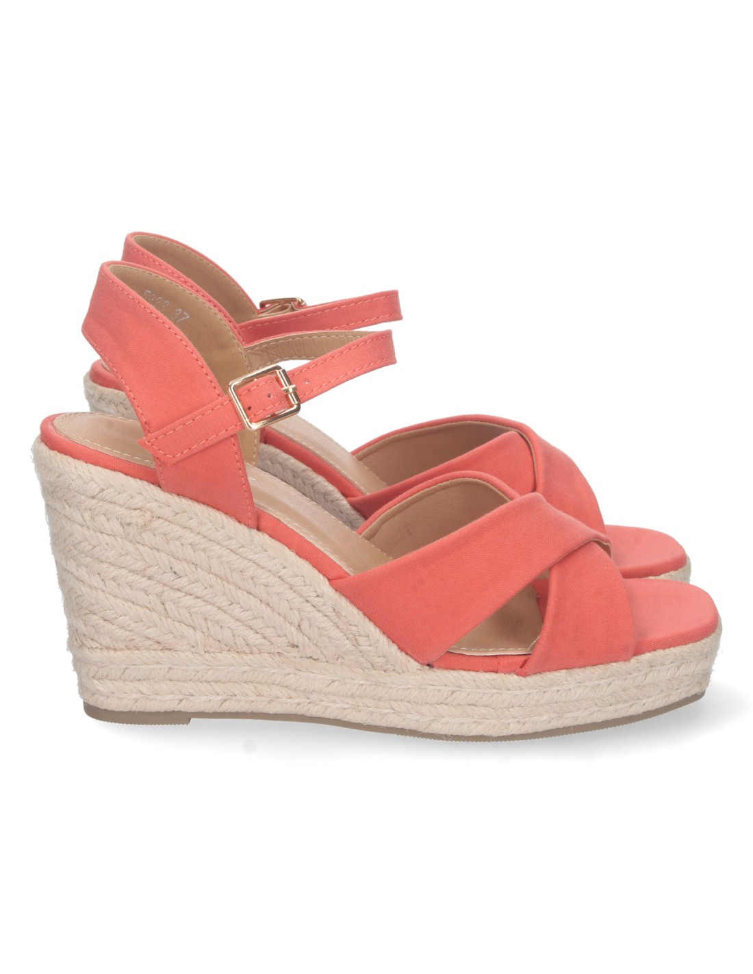 Sandalia de Cuña para Mujer, Comoda, Forrada de Yute, Palas Cruzadas, y Cierre de Hebilla