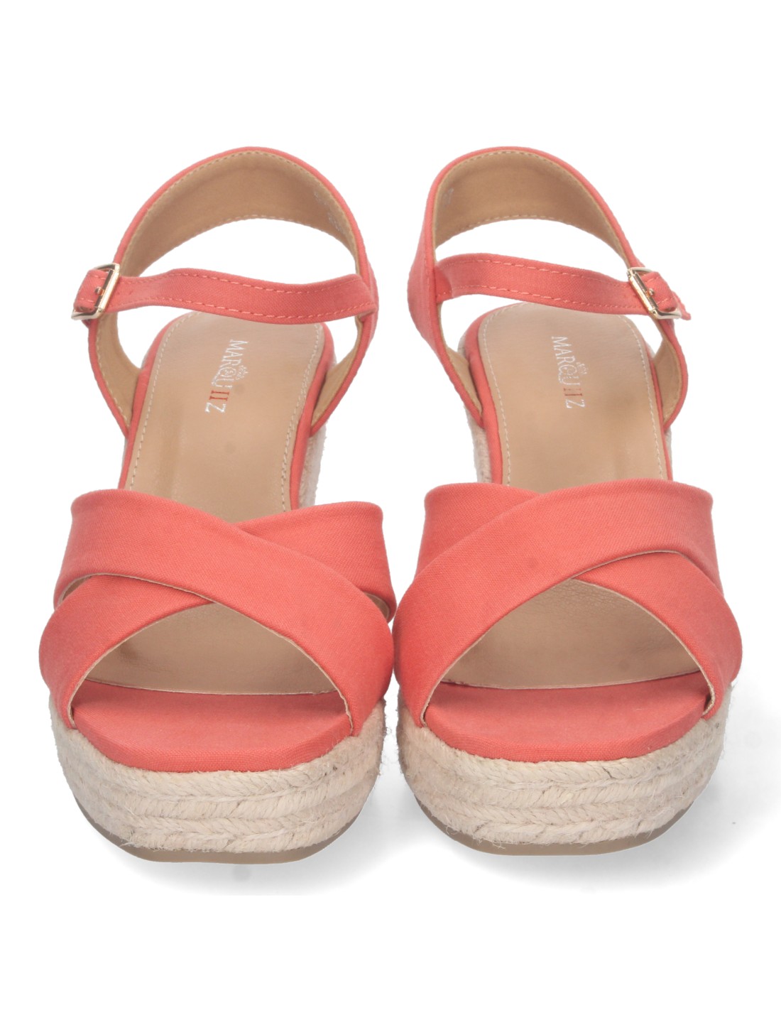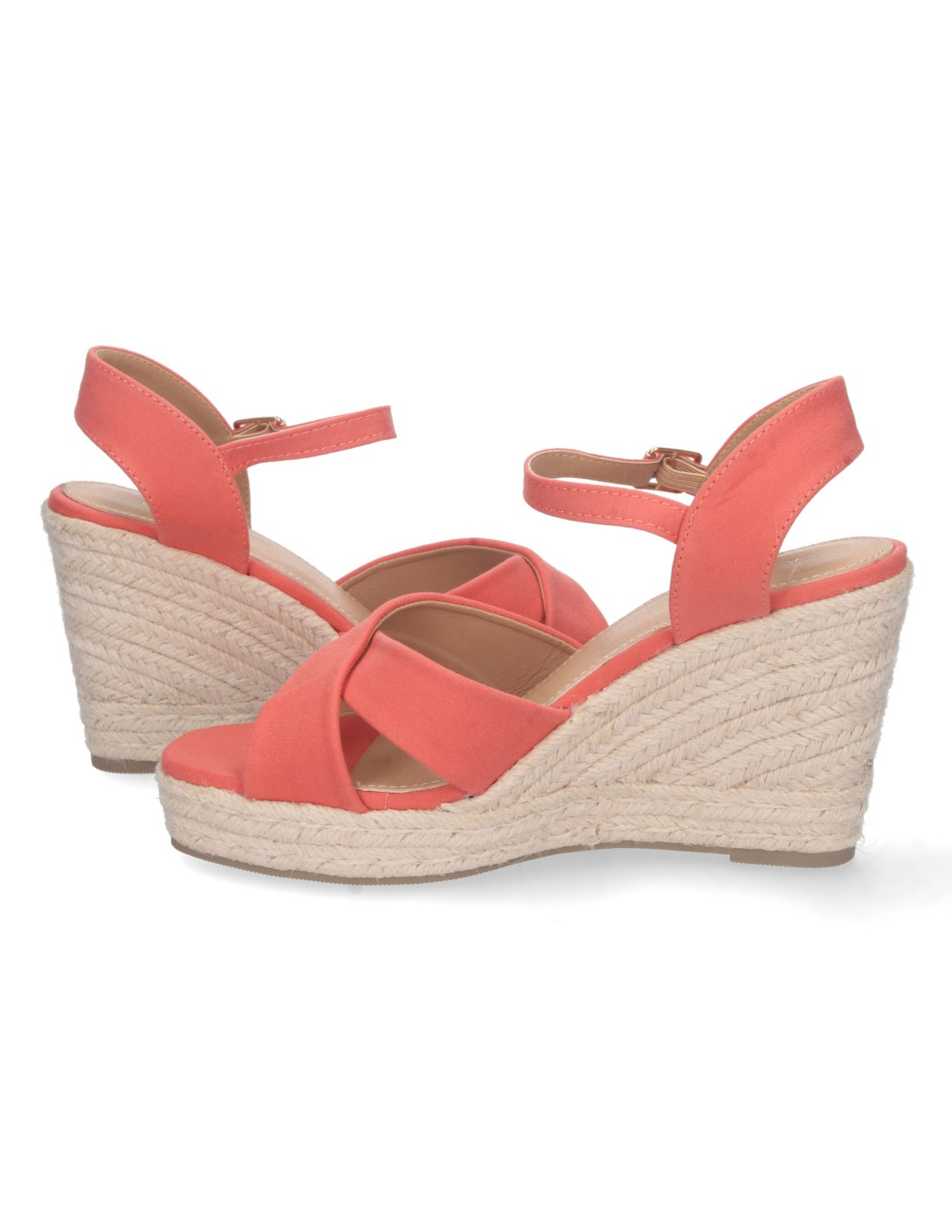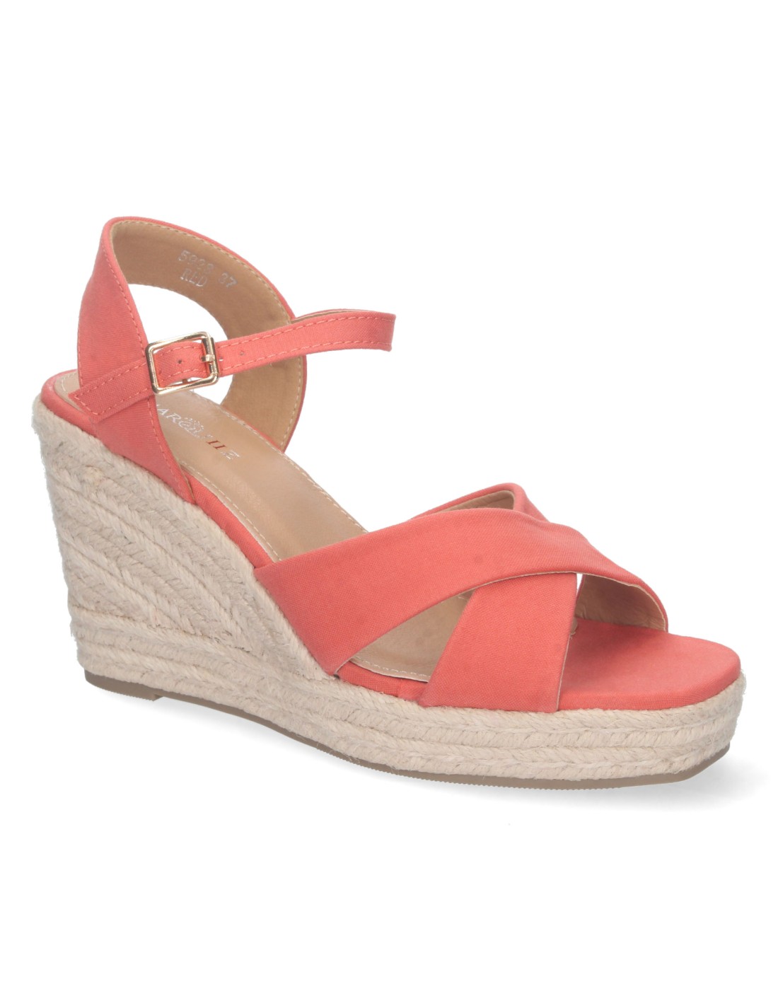 Sandalia de Cuña para Mujer, Comoda, Forrada de Yute, Palas Cruzadas, y Cierre de Hebilla