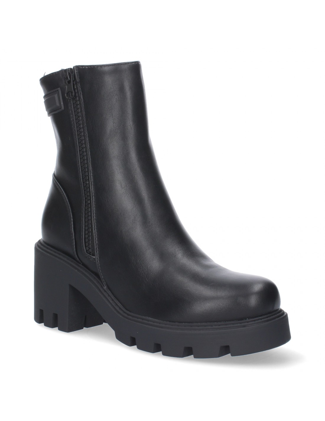 Botín de Tacón Bajo para Mujer, Comodo, adorno en la caña, y Cierre de Cremallera.