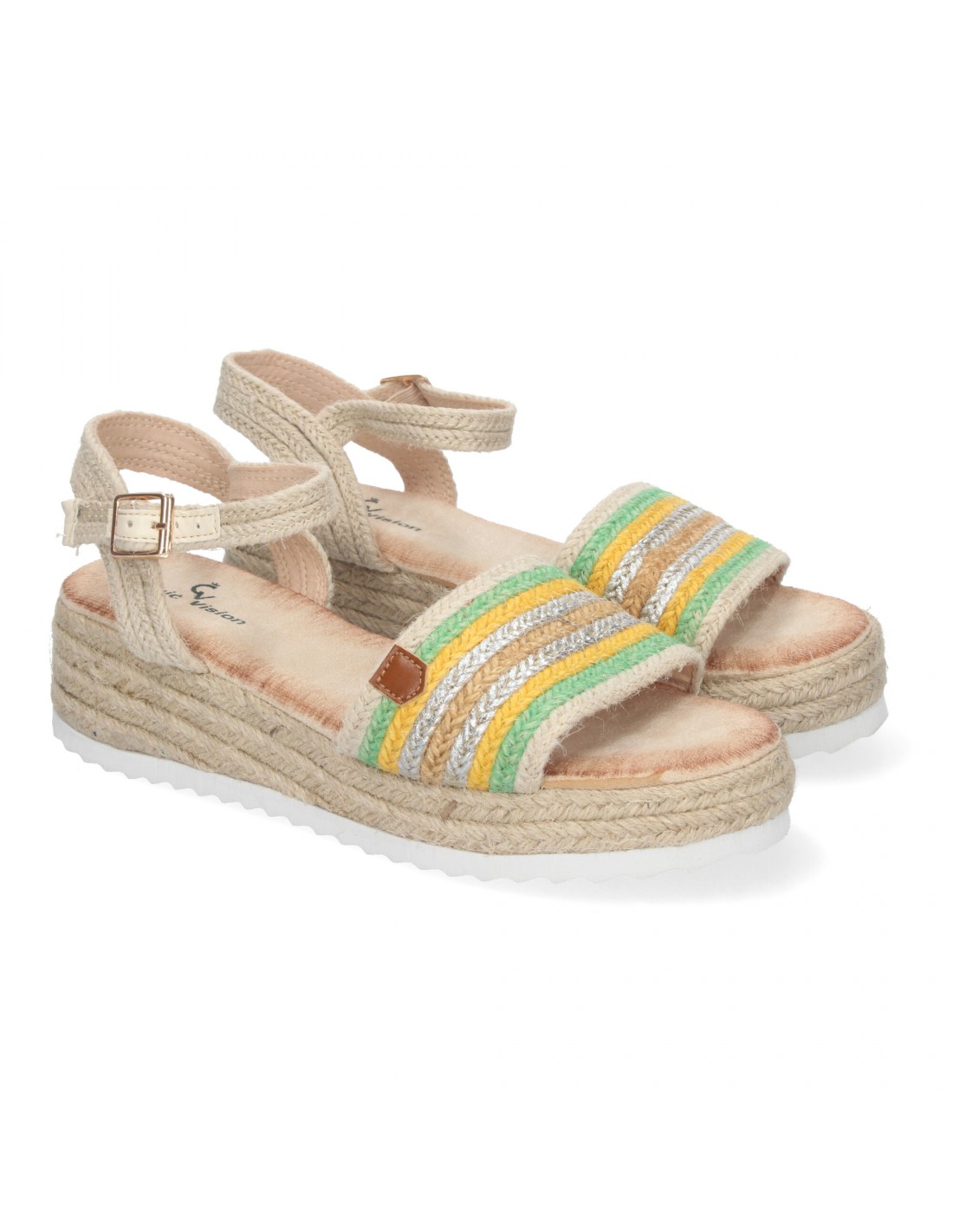 Sandalias para mujer de Verano con Cuña de Yute, Diseño Elegante, Cierre Ajustable con Hebilla y Punta Abierta.