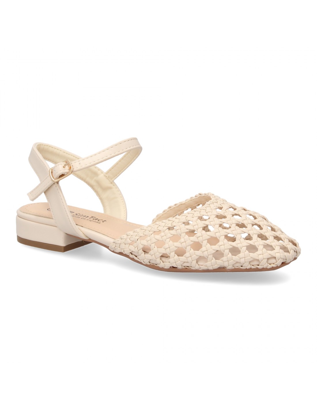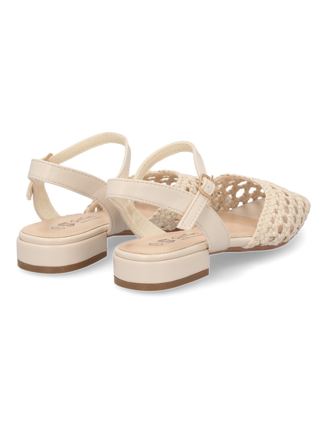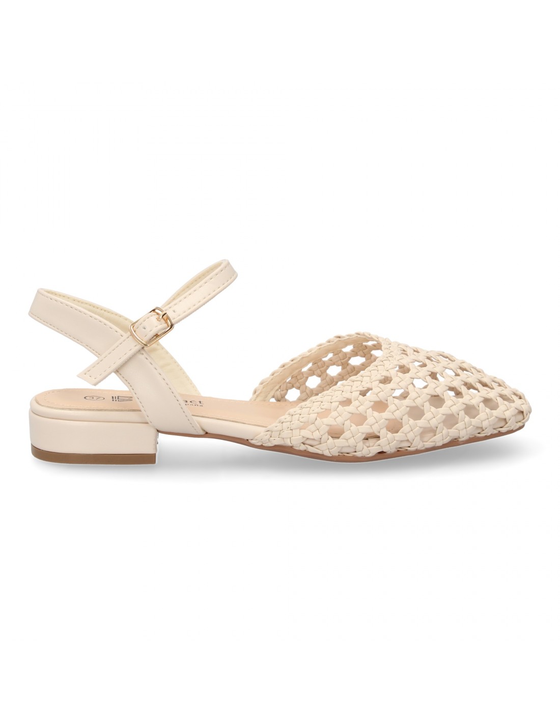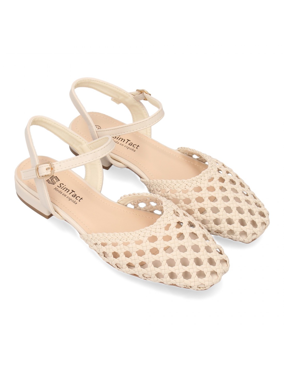 Sandalias planas de mujer, comodas y elegantes diseño moderno trenzado en la pala con cierre de hebilla, ideales para primavera-verano.