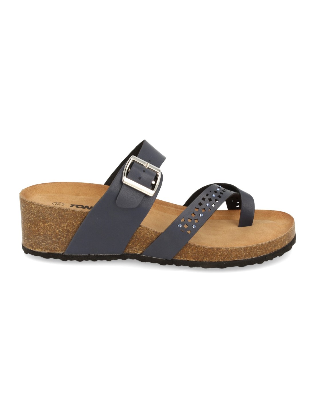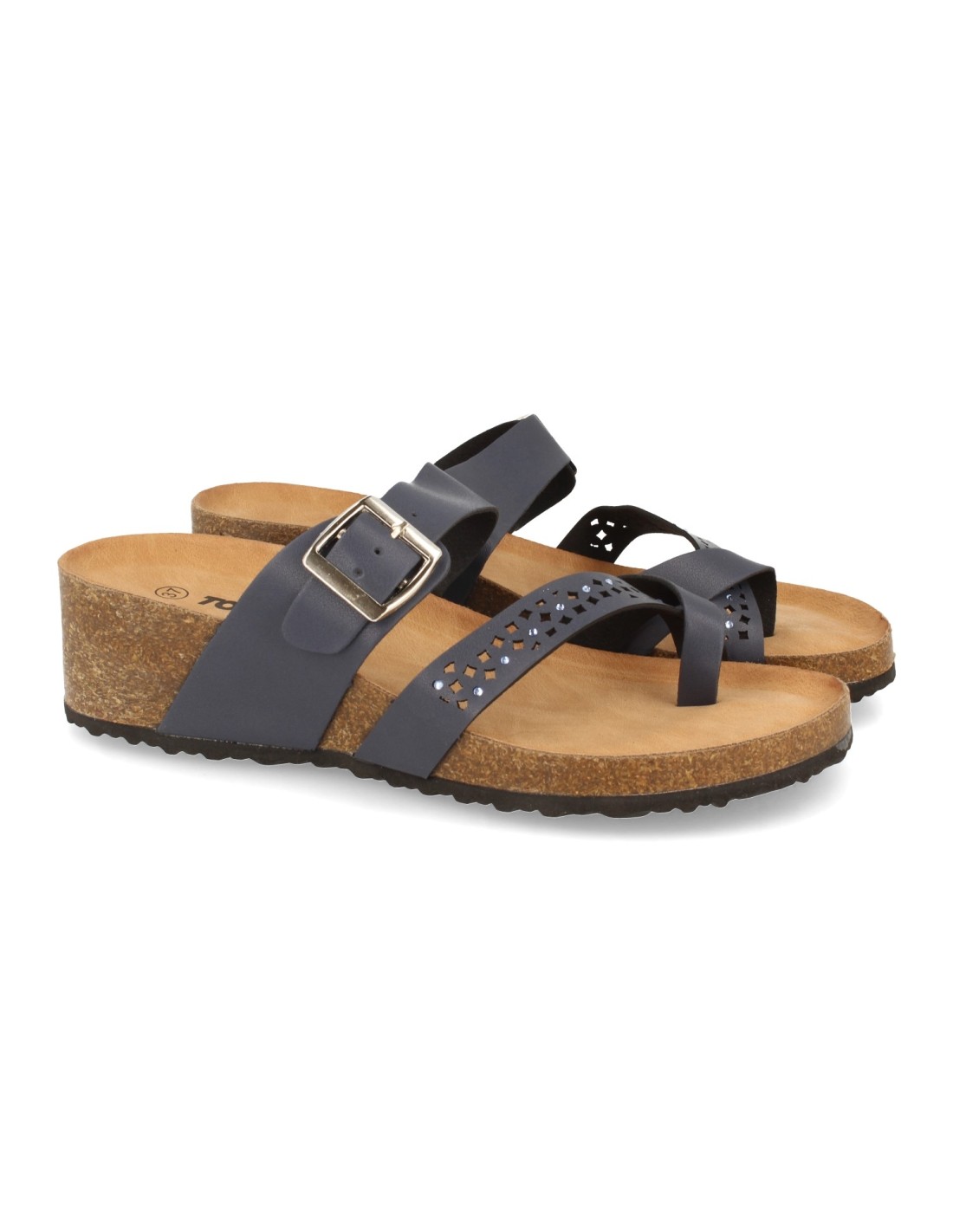Sandalia de Cuña, para Mujer, con Planta Comoda Anatomica, con Calados y Adornos Metalizados, Cierre de Hebilla Primavera Verano 2020