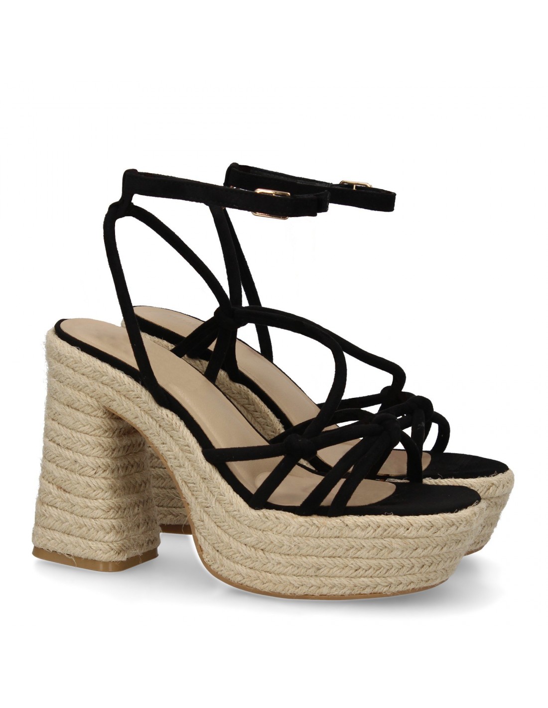 Sandalia de tacón de yute para mujer, comodas y elegantes, diseño moderno con tiras cruzadas