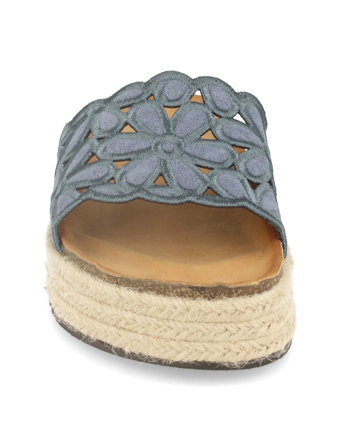 Sandalia de Mujer con Plataforma, Pala Decorada de Flores, Yute, con Piso de Bio, y Talon Abierto Primavera Verano 2020